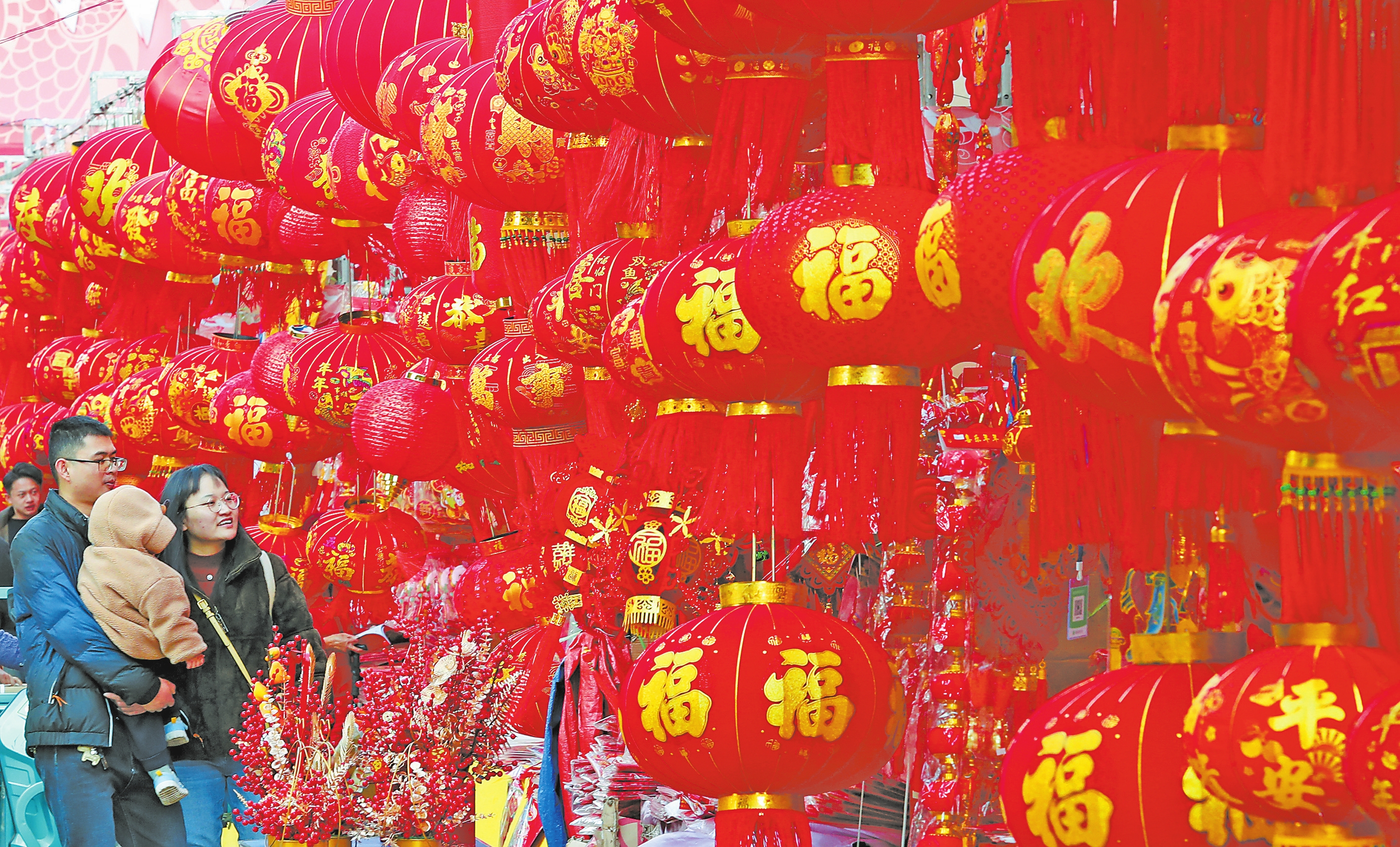 逛集市、买年货、选春联、品美食……春节期间,我省各地年货市场热闹非凡,大街小巷处处是红红火火的喜庆场面。浓郁的年味扑面而来,丰富多彩的活动助燃热腾腾的烟火气,汇成一幅幅充满活力的新春图景。