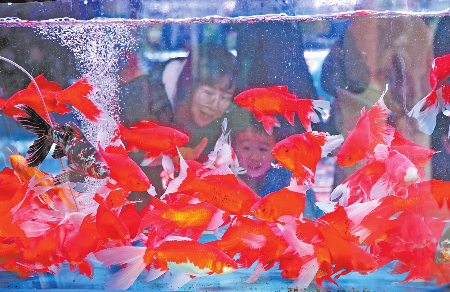 春节期间,昆明景星花鸟市场观赏鱼市场热闹非凡。许多市民到这里选购观赏鱼作为年货,寓意“年年有余”,为家中增添节日气氛。