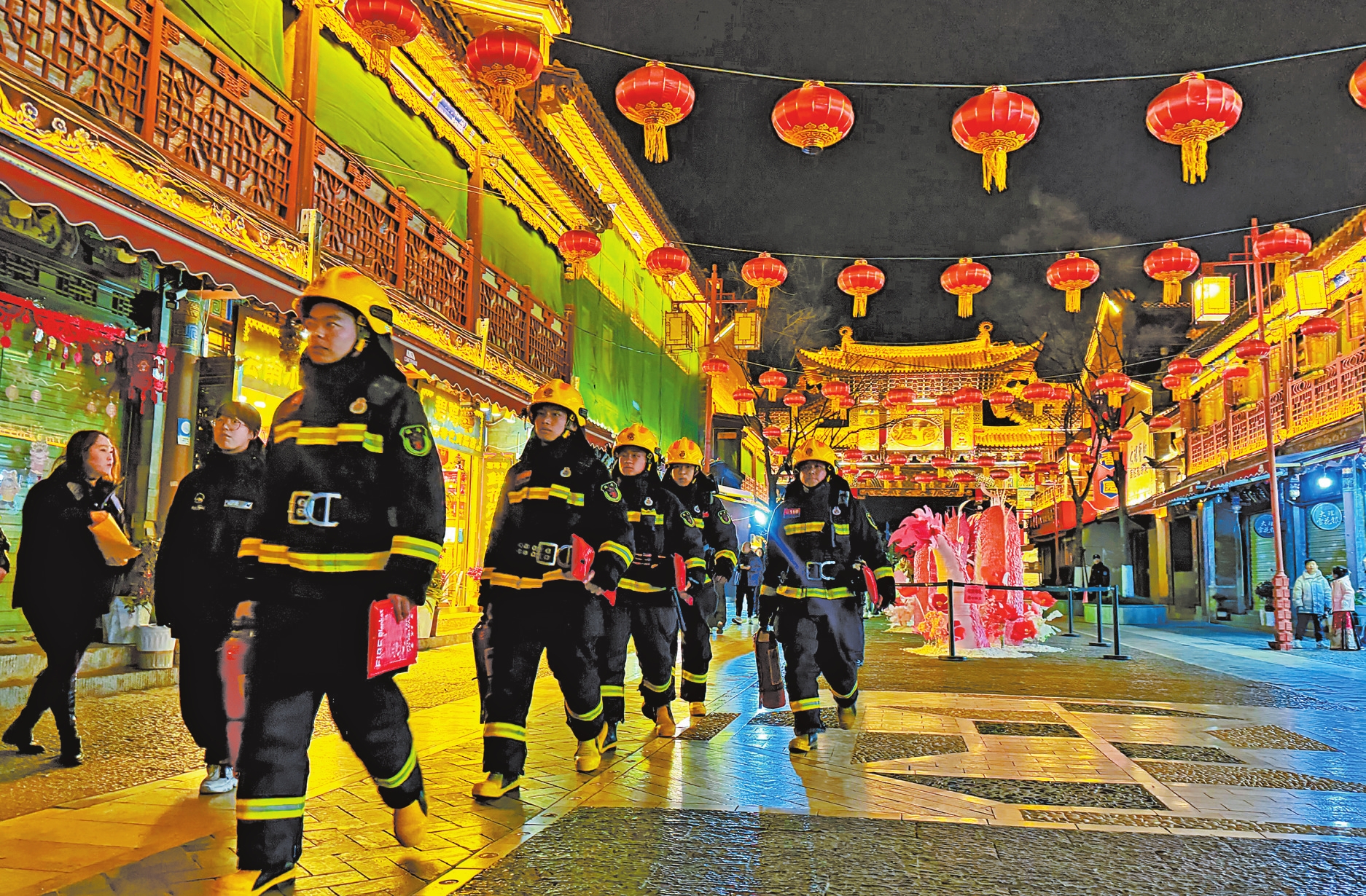 昆明市官渡区消防救援大队云福街消防救援站人员在官渡古镇开展防火巡查。
