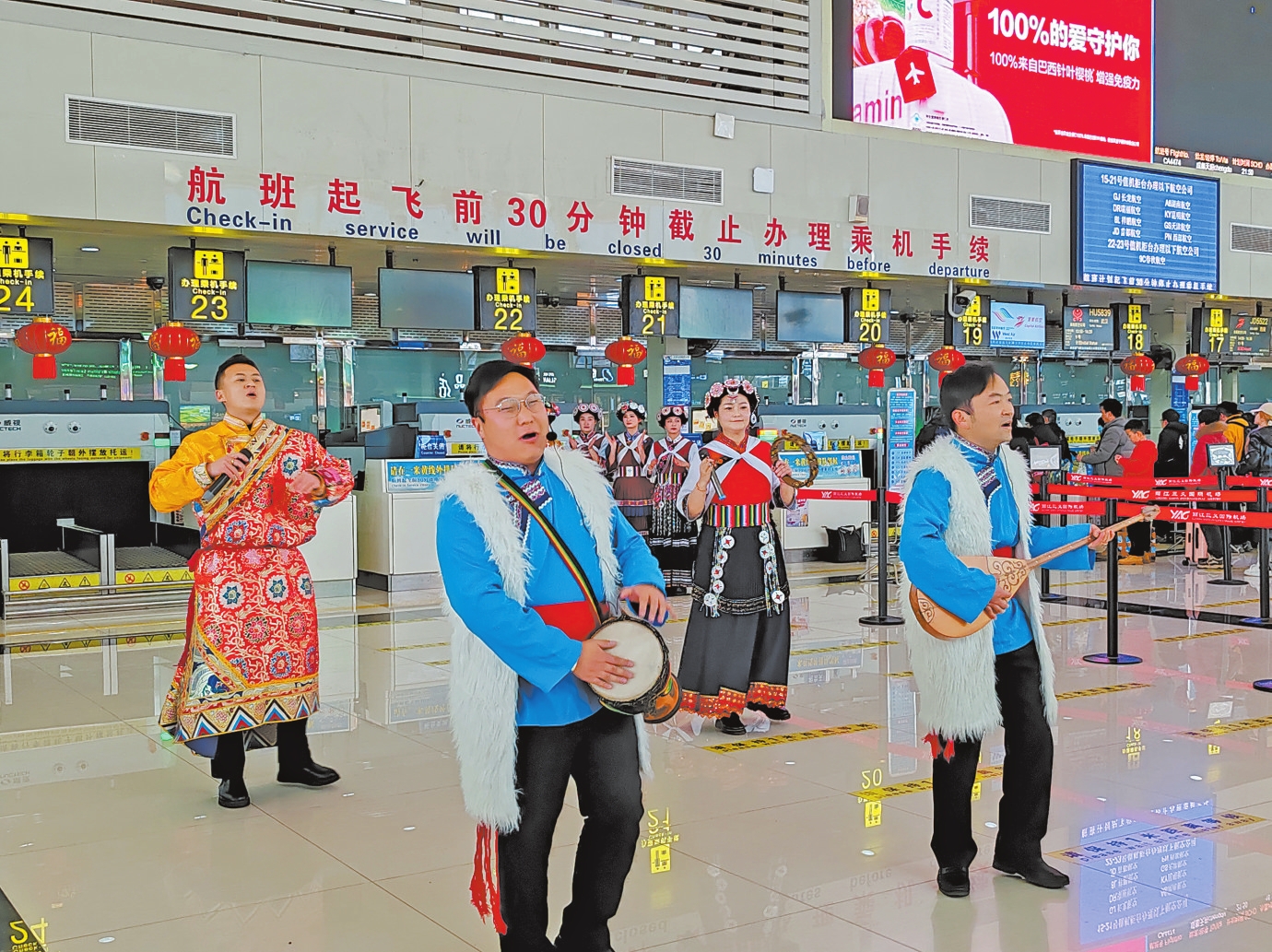 “彩云之南,我心的方向……”近日,随着悠扬歌声响起,一场别开生面的“新春快闪”在丽江机场出发大厅精彩呈现,吸引了众多旅客驻足观赏。