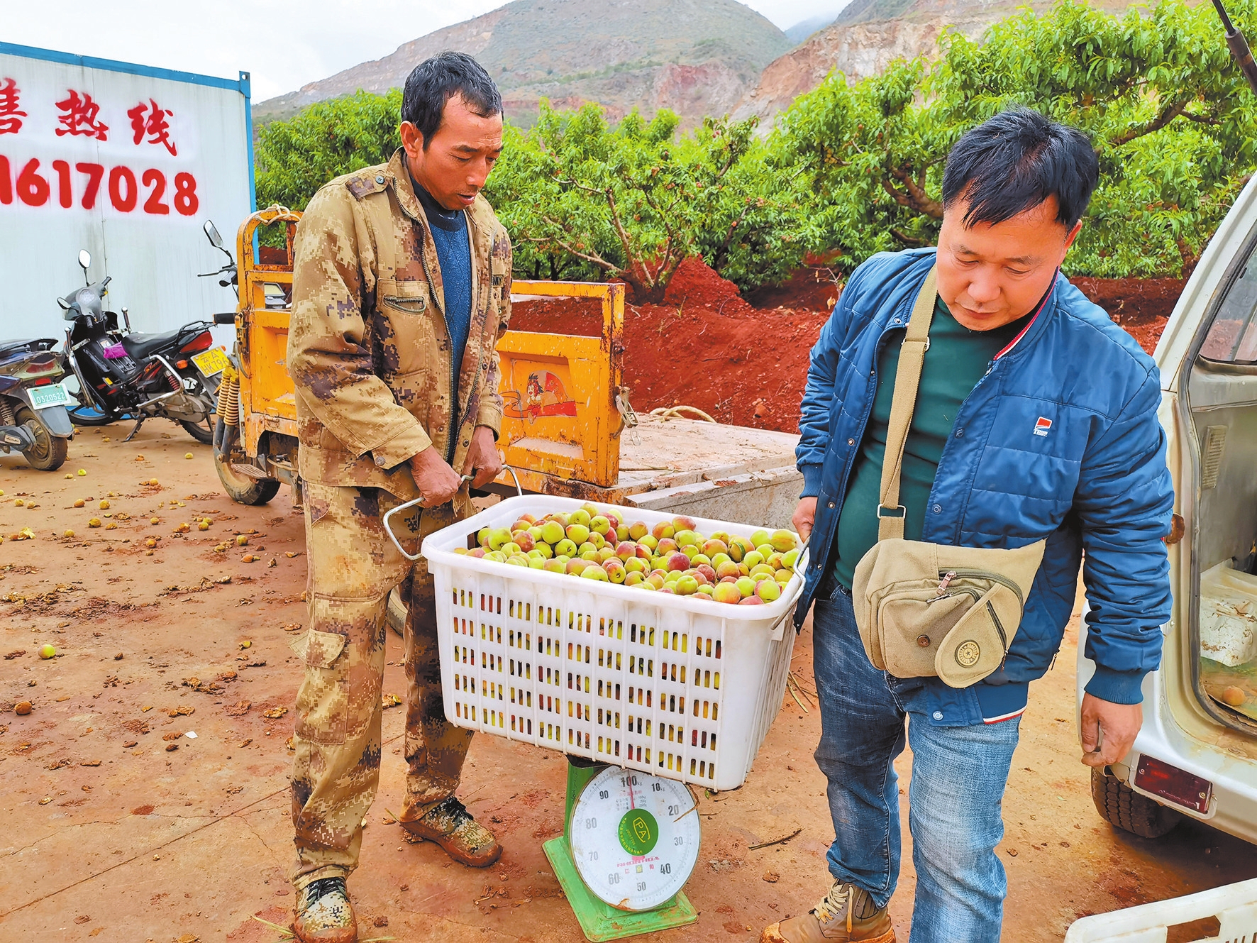早春,东川区碧谷街道洗尾嘎社区阳光明媚。桃园里,村民们忙着把早春桃装筐,用摩托车、三轮车、货车送到收购点,村里10余个收购点每天都是一片繁忙的景象。