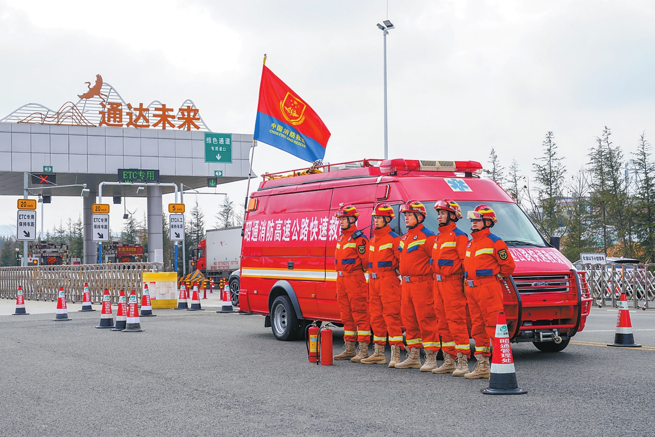 昭通市消防救援支队成立了3支高速公路快速救援队,自2月8日起在昭通境内高速公路服务区设置临时驻点,实行移动式接警、轻量化处置、24小时不间断值守,以消防救援队伍的速度和专业,温暖护航春运交通安全。每支救援队由7名参加过车辆交通事故处置、公路隧道火灾扑救技术和EMT院前急救等专业化科目实训合格的队员组成。每个轻量化快返单元包括1名安全长、1名指挥员和5名战斗员,配备1辆快速救援车和破拆顶撑类、火灾扑救类、通信照明类、医疗救助类4大类20余件套器材装备,以救援力量前置的方式,缩短出动到场过程中的用时。