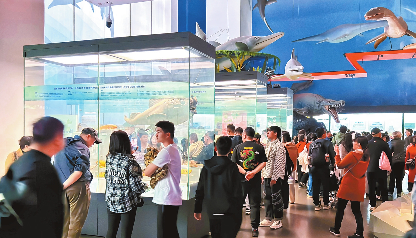 云南古生物历史吸引观众围观。