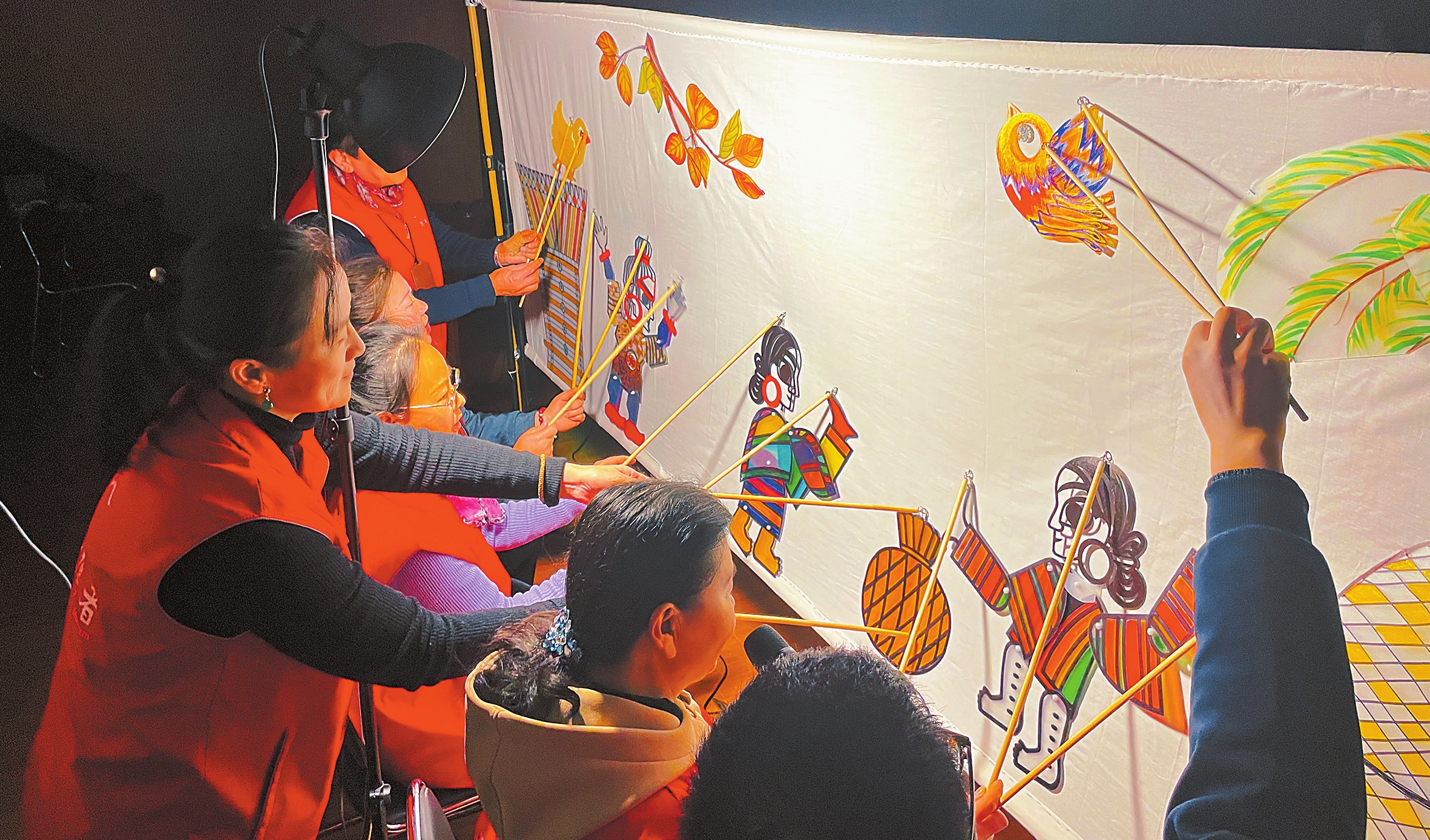 志愿者表演皮影戏。