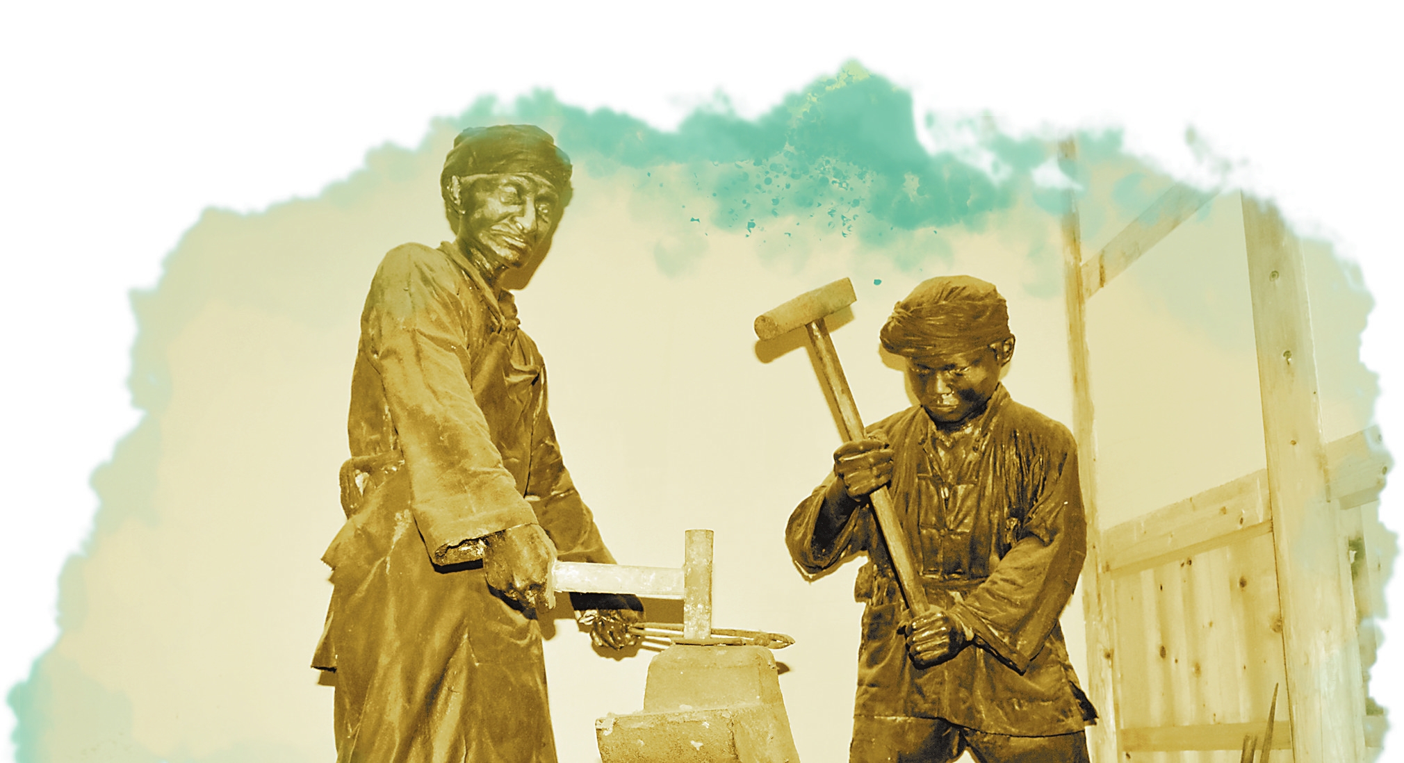 今天的铁匠村虽然隐去“叮叮当当”的锻打声音,但立在村口的牌坊和打铁雕塑,县志村谱都还一起记载着岁月:生铁和熟铁,锻打的时候,炽热铁花灿烂,家园河畔,玫瑰花香随风四溢,物质和精神,都是生命进程中埋藏的种子。
