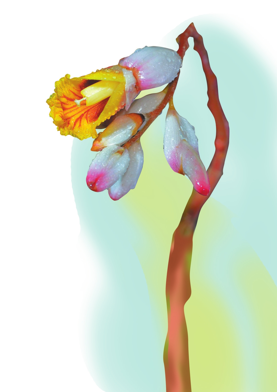初开的野姜花,肌肤白嫩细腻。那种嫩,让人唯恐伤到花朵而赶紧屏住了呼吸。花片下面,是纺锤状如松塔般的绿得像翡翠的花苞,上面织满鳞片。而每一片鳞下,会藏着两到三叶花芽。中间的,先开了,像几只振翅欲飞的素蝶,又如紧裹着泳衣的少女。侧边的,刚露了黄芽,羞答答,像出水小荷。而最下边的芽,依旧深藏在绿衣里。