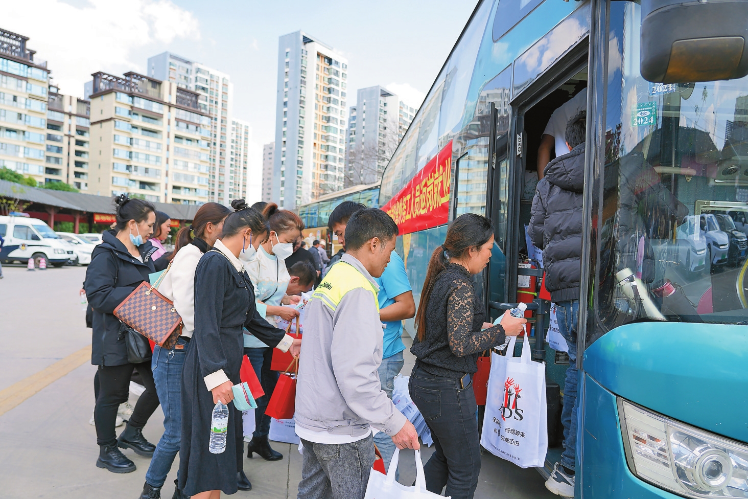 2月17日,2024年红河哈尼族彝族自治州赴外省务工人员返岗就业集中欢送仪式,以及2024年蒙自市农村劳动力转移就业“百日攻坚行动”欢送赴省外务工人员返岗就业活动在蒙自市“建设者之家”举行,200余名外出务工人员搭上“务工包车”有序前往广东、江苏等地就业。