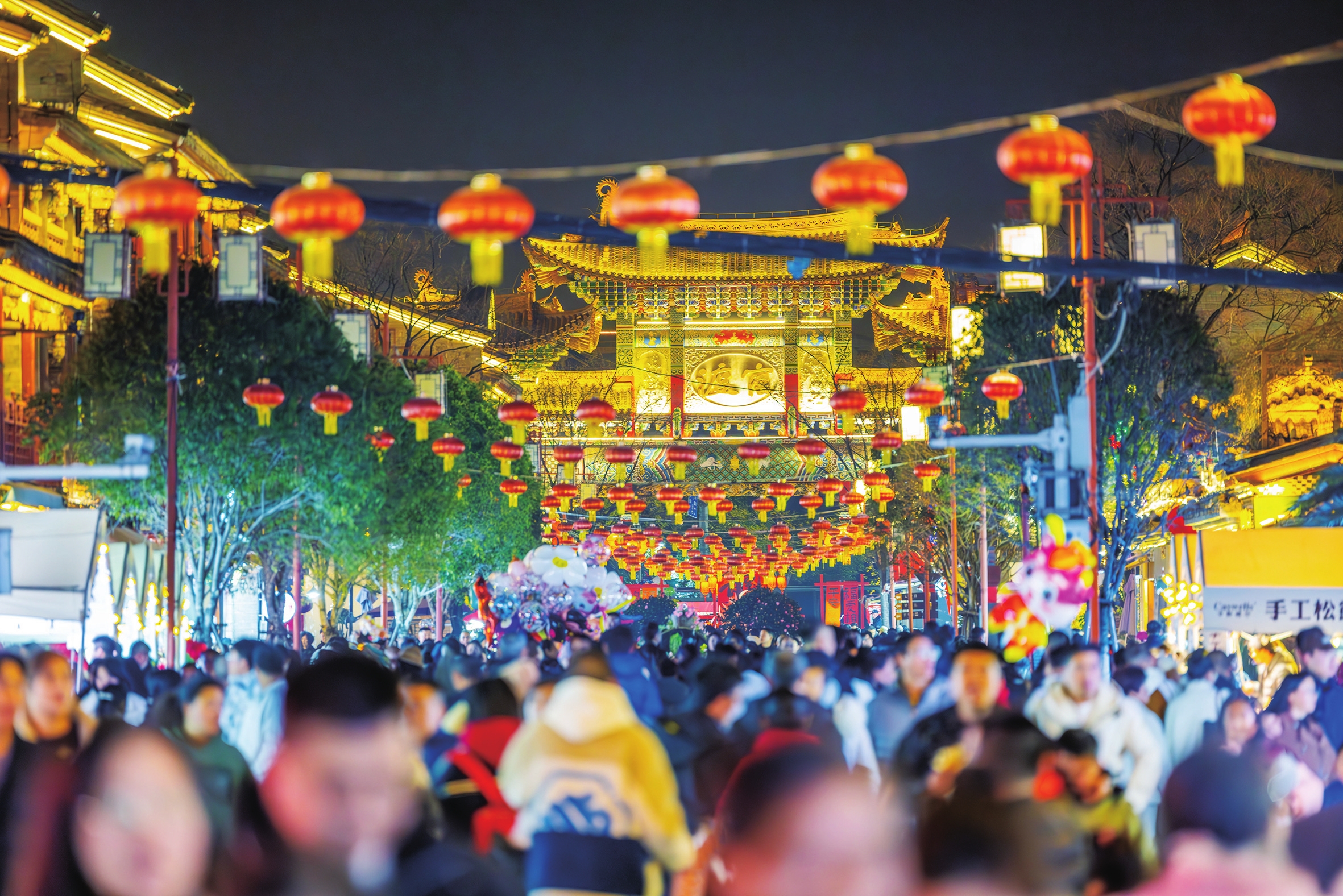 此外,一系列新场景、新产品、新玩法为市民和游客带来了新奇体验。昆明文庙举办文化惠民活动,展示昆明非遗项目和滇剧、花灯等文艺节目;公园1903将拜财神、接财运等民俗融入新春市集,推出财道地图、财龙抬头、祈财庙会、鱼灯巡游等活动;滇池后海商业街举办龙鱼千灯会,龙鱼灯游、放河灯等浪漫应有尽有。各大公园、社区街道、地标商圈也纷纷使出绝活,年味十足。