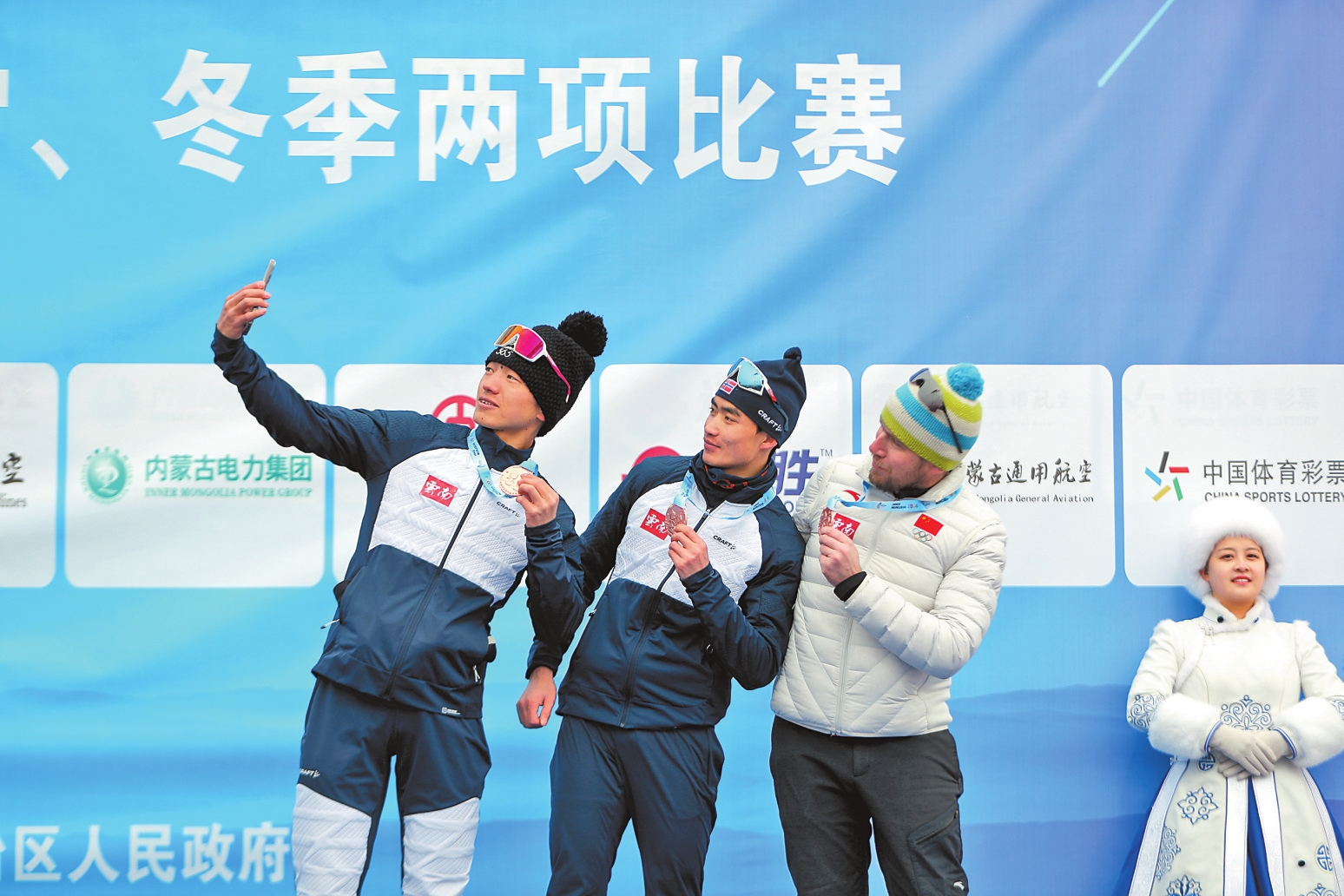 本报凉城专电(记者 娄莹) 2月19日,第十四届全国冬季运动会越野滑雪项目公开组男子/女子团体短距离(自由技术)比赛在乌兰察布凉城滑雪场进行,云南运动员陈德根、刘荣胜获铜牌。在当日举行的单板滑雪障碍追逐比赛上,潘鸣获男子青年组铜牌。