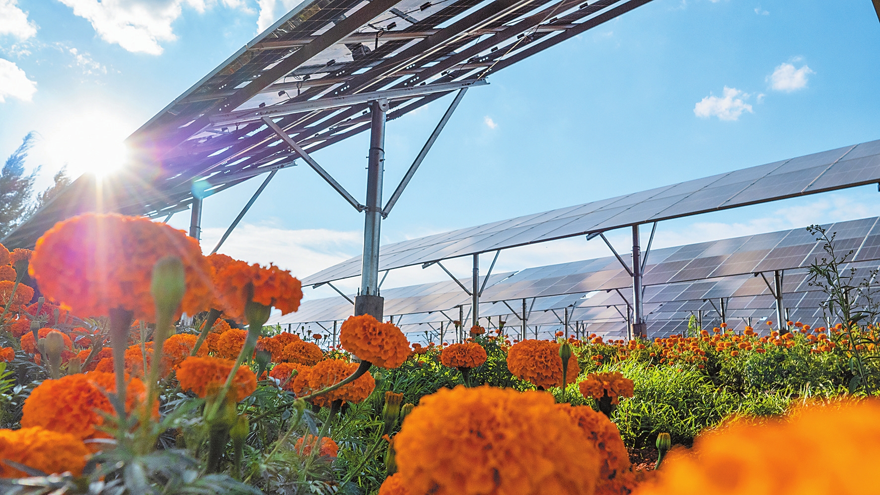 在临沧市云县石门坎、阿柱田光伏电站项目基地,从河谷地带到高山之顶,一块块光伏电池板整齐排列成方阵,在阳光下熠熠生辉。光伏发电板的下方,一簇簇金银花不时“探”出头来,规划种植的滇黄精、白及等中药材长势喜人……上有光伏、下有产业,在土壤贫瘠的坡地上建设光伏发电项目,在光伏发电板下种植中药材,由“借光”到“光农互补”,由“帮扶输血”到“自我造血”,华能澜沧江公司书写出了借光生“金”、一路繁花的助农篇章。