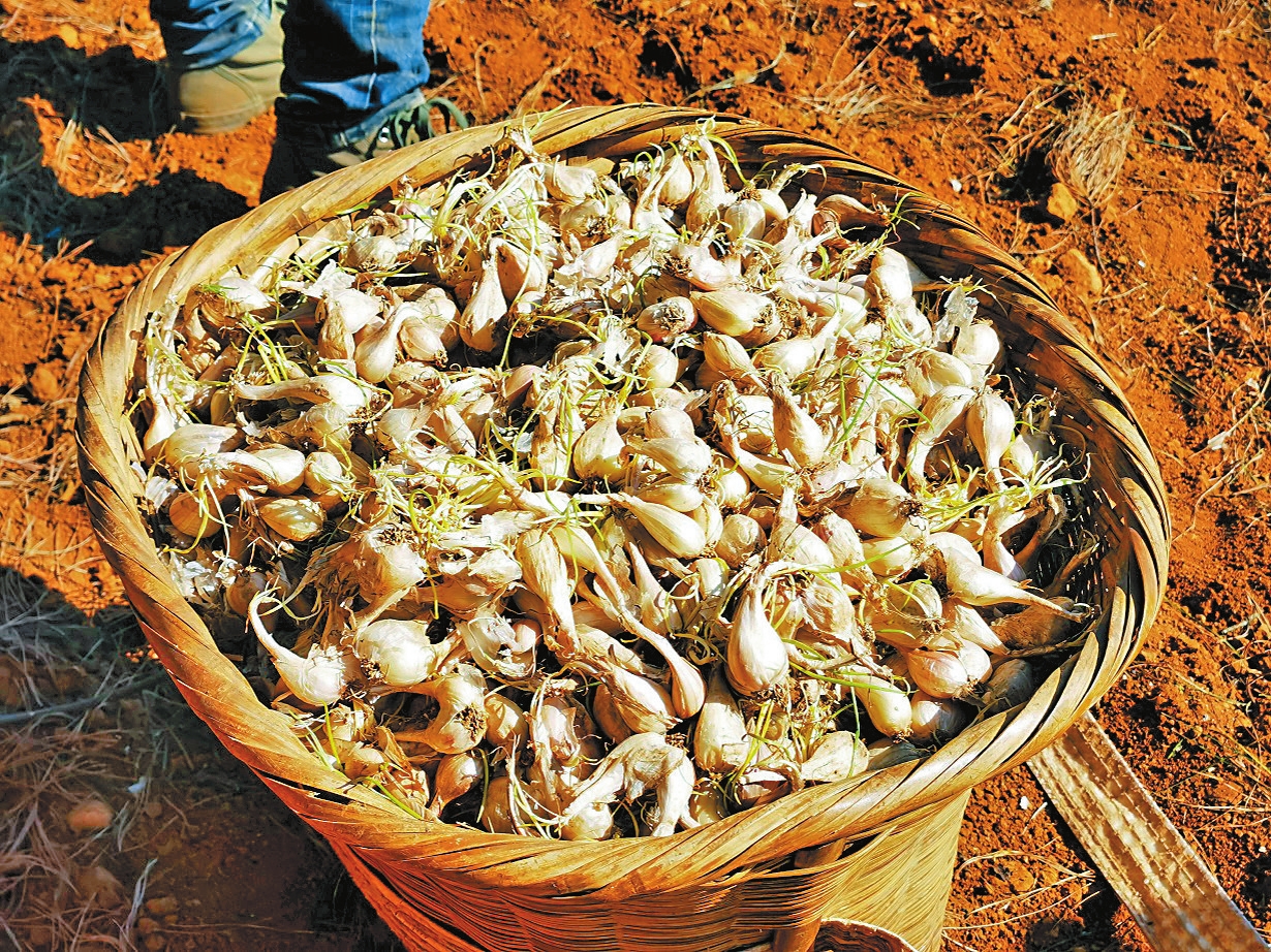 碑格乡是开远市藠头主产区。由于远离工业污染、自然条件独特,碑格乡出产的藠头具有个大色白、晶莹如玉、皮软肉糯、脆嫩无渣等特点,被称作“珍珠玉”,远销日、韩等国家,成为农民增收、乡村振兴、产业兴旺的强大推动力。今年,全乡预计种植藠头1.8万亩。