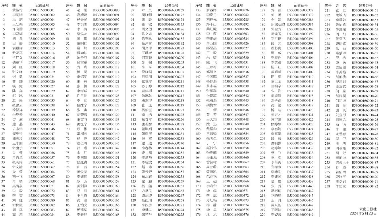 根据《云南省新闻出版局关于开展2023年度新闻记者证核验工作的通知》(云新出通〔2024〕1号)要求,我单位对已持有新闻记者证人员进行严格审核,现将拟通过核验人员名单进行公示,监督电话:0871-64166931。