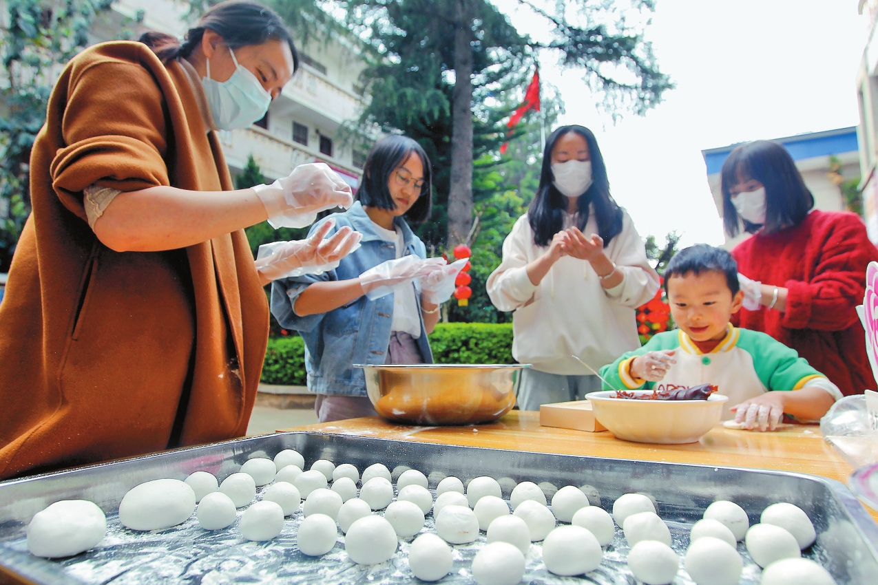 2月23日,昆明市呈贡区洛龙街道办事处组织职工及家属开展元宵节包汤圆活动,现场洋溢着欢乐祥和的节日氛围。见习记者 高吴双 摄