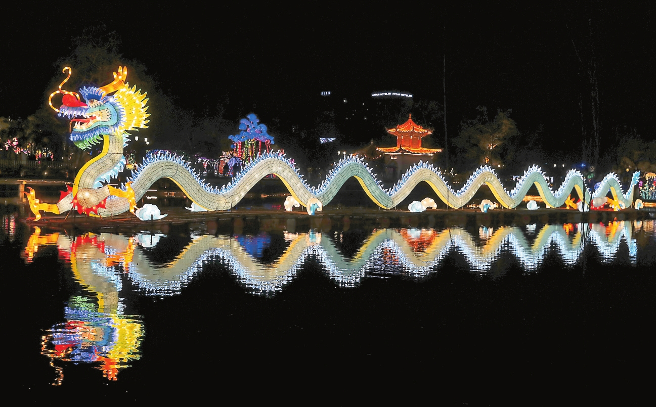 下图:昆明大观公园“滇池夜宴——2024大观楼灯展”吸引市民游人。