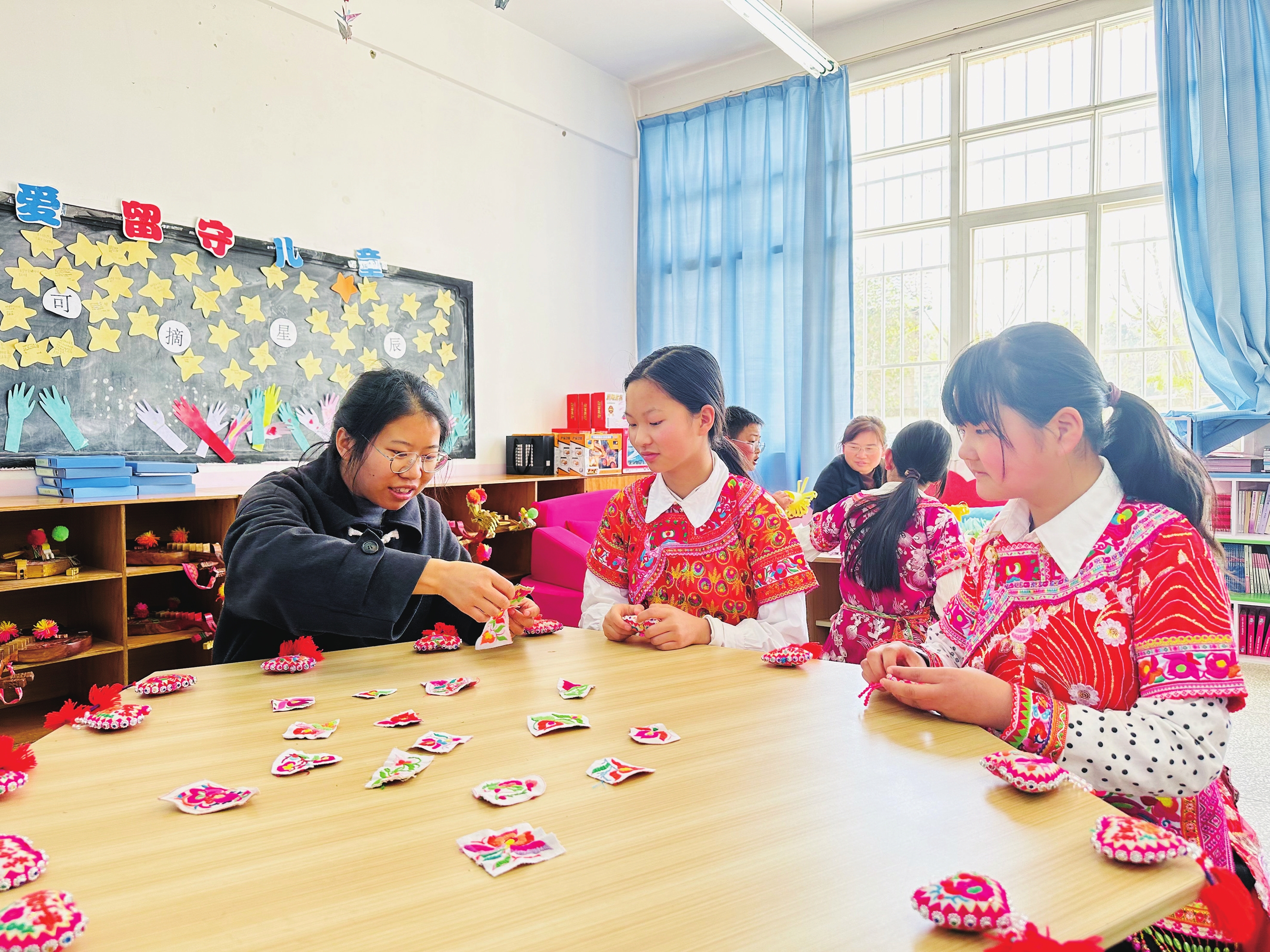 “今天我们欢聚一堂,大家一起来剪新春福袋,祝大家在新的一年里福气满满,新春快乐。”春节前夕,走进元江第三小学儿童之家,只见部分留守儿童和回乡家长在老师的指导下,共同完成了一幅幅剪纸作品。