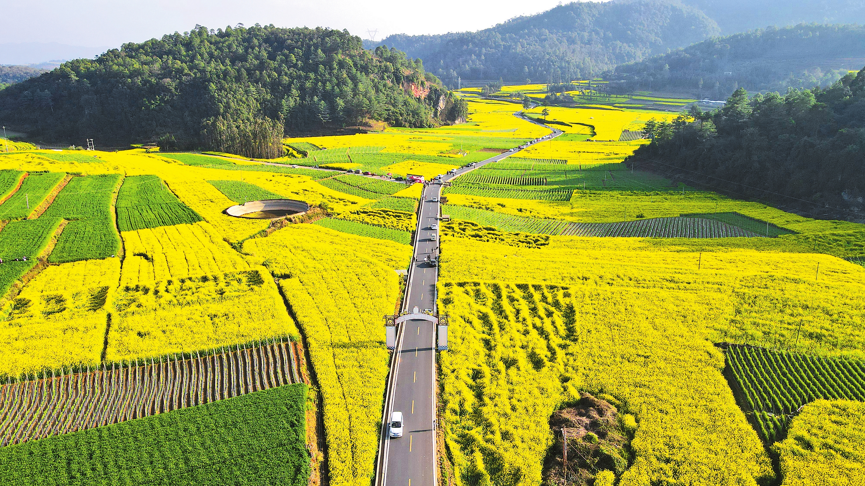 随着春日的来临,峨山彝族自治县大富塔一线的山地油菜花迎来盛放期。在和煦阳光的照耀下,绿意渐浓的高山梯田之间,油菜花争相绽放,等待着游客的到来。本报记者 李苏榕 摄