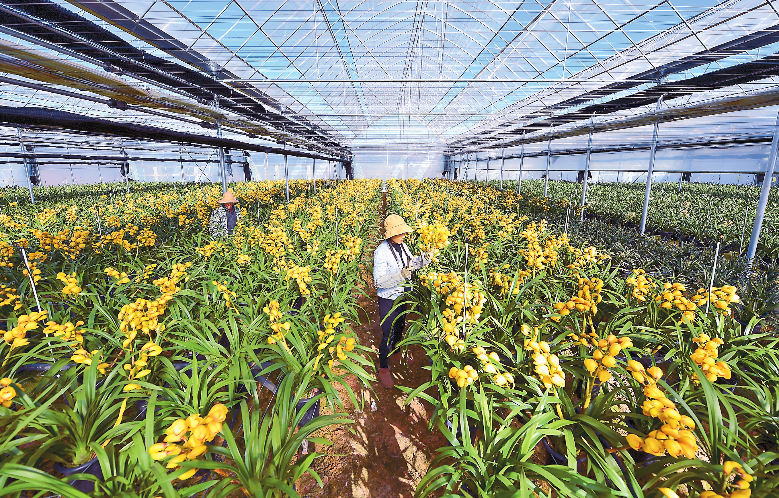 近年来,江川区以亚洲花卉科创谷为载体,坚持科研与产业并重,围绕“品种、品质、品牌”3个核心环节,着力打造九溪花卉特色小镇,努力建成国际花卉育种中心、技术研发中心、花卉产业人才培养基地、花卉品牌交易平台和面向南亚东南亚重要花卉生产基地。图为位于亚洲花卉科创谷的云南桦兰世家花卉有限公司大花蕙兰生产车间。本报通讯员 曾永洪 摄