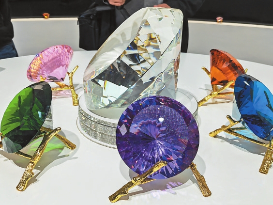 走进罗平产业园区国际水晶产业园项目点云南兴亮晶钻珠宝饰品有限公司展品区,水晶及其打造的各种物品琳琅满目。璀璨的七彩水晶装饰中,精美的西式婚纱、中式旗袍、装饰画及各种日用生活品灵动传神,让人爱不释手。