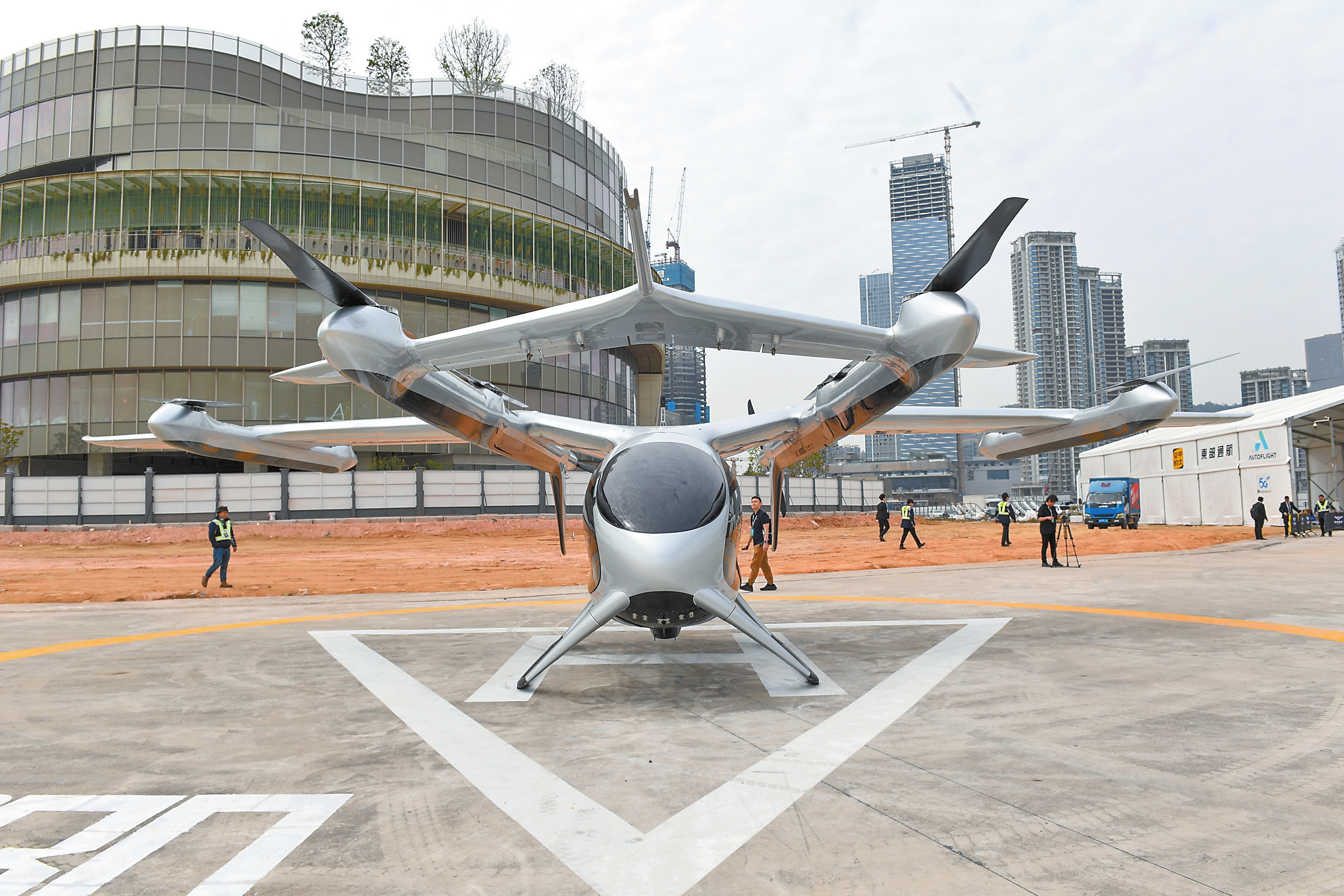 2月27日,5座eVTOL(电动垂直起降)航空器盛世龙从深圳蛇口邮轮母港起飞,经过约20分钟的飞行,降落在珠海九洲港码头,完成深圳至珠海跨海跨城eVTOL航空器航线的首次演示飞行。此次执飞的航空器“盛世龙”由峰飞航空科技自主研发,动力为纯电,可载5人,巡航速度最高可达200公里每小时,最大续航里程250公里。图为27日,在深圳蛇口邮轮母港拍摄的5座eVTOL(电动垂直起降)航空器盛世龙。新华社记者 毛思倩 摄