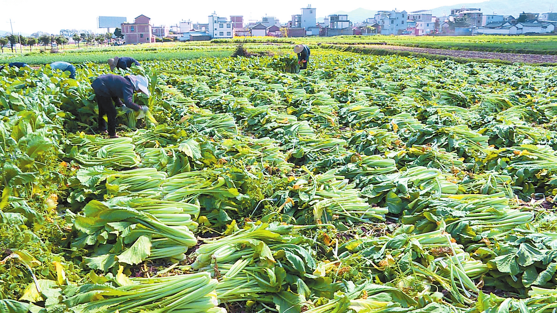 今年,弥渡县新街镇西庄村委会双村村民杨红星家种植了2亩大青菜。这几天,他正忙着请工人收割大青菜,准备销售给弥渡县老土罐绿色食品有限责任公司。他告诉记者,这是他家连续种植大青菜的第12个年头了,与公司签订了收购合同,销售有保障。“今年种的大青菜亩产值4000元至5000元左右。种大青菜比种其他作物周期短、投资小、容易管理,相对来说效益比较高。”杨红星说。