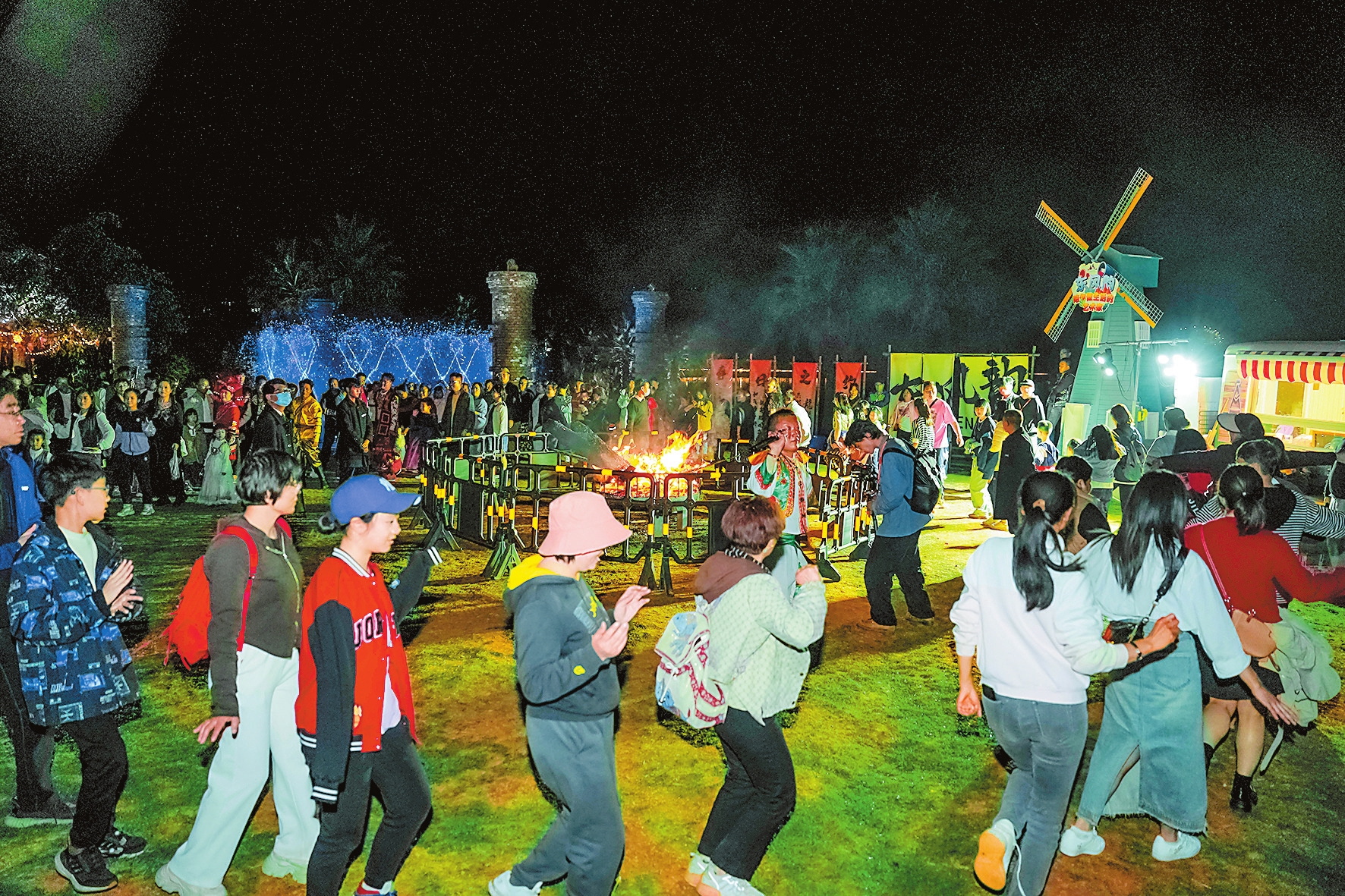 从非遗艺术开启有玩有学新模式,在音乐潮集认识宝藏摊主、感受人间烟火,从文创产品中感受创作者们的匠心……不间断的游玩项目给游客提供了多样化选择,也放慢了游客的脚步。可邑小镇景区以“阿细秘境 乡野之乐”为主题,通过一系列特色鲜明的春节主题活动,强化了一座“生活着”的彝族文化小镇的核心主题,有效拓展了滇中及川、渝、贵游客市场。在可邑小镇景区,乡野市集的地道美食、好客阿细人的民俗展演、热火朝天的篝火晚会以及民族旅拍和民俗体验,让游客沉浸式体验彝式新年。充满民族特色的乡野集市上,本地的传统文化、地道美食、手作好物吸引游客纷纷打卡。锦屏山风景区以“福地弥勒 灵山锦屏”为主题,通过多种非遗花灯和谐交织的龙华灯会、美食与各式年货聚集的庙会集市、重拾岁时礼俗的元宵喜乐会,让游客真切感受熟悉的中国传统年味。