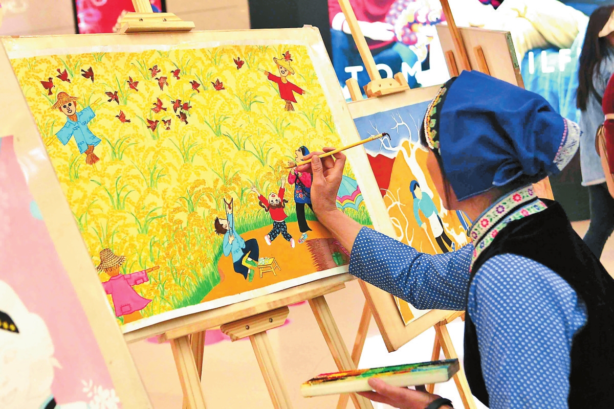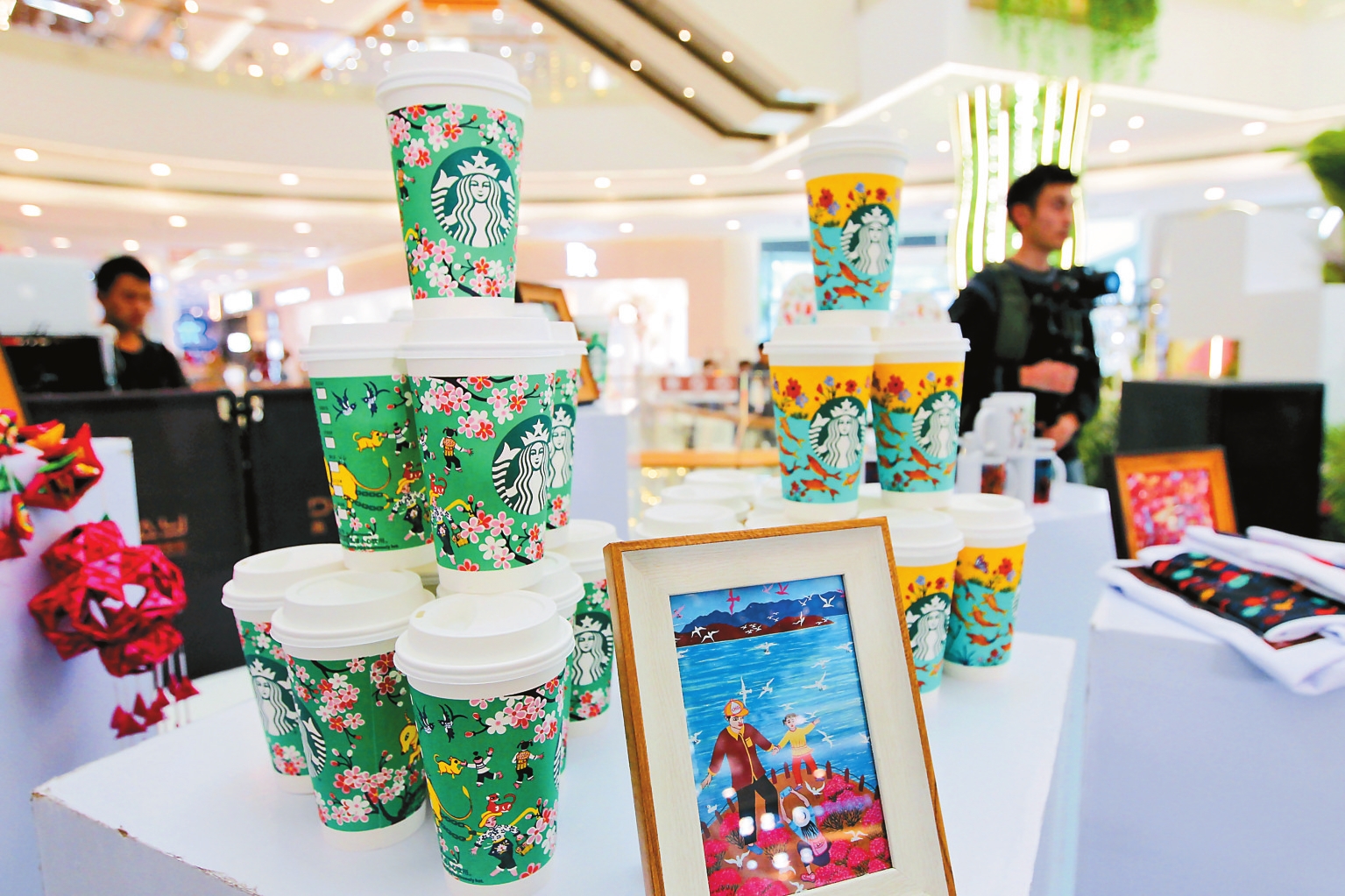 此次画展持续1个月,共展出呈贡区具有代表性的100余幅优秀民间绘画作品,展现农村特有的场景和风情,反映民间绘画传承人的智慧与情感。活动还设置传承人代表访谈、现场作画、文艺表演等环节,全面呈现民间文艺的魅力。来自呈贡区的农民画家卓丽萍、罗丽珍等人的绘画作品,被收录、运用在星巴克品牌咖啡杯上,吸引众多市民拍照打卡。