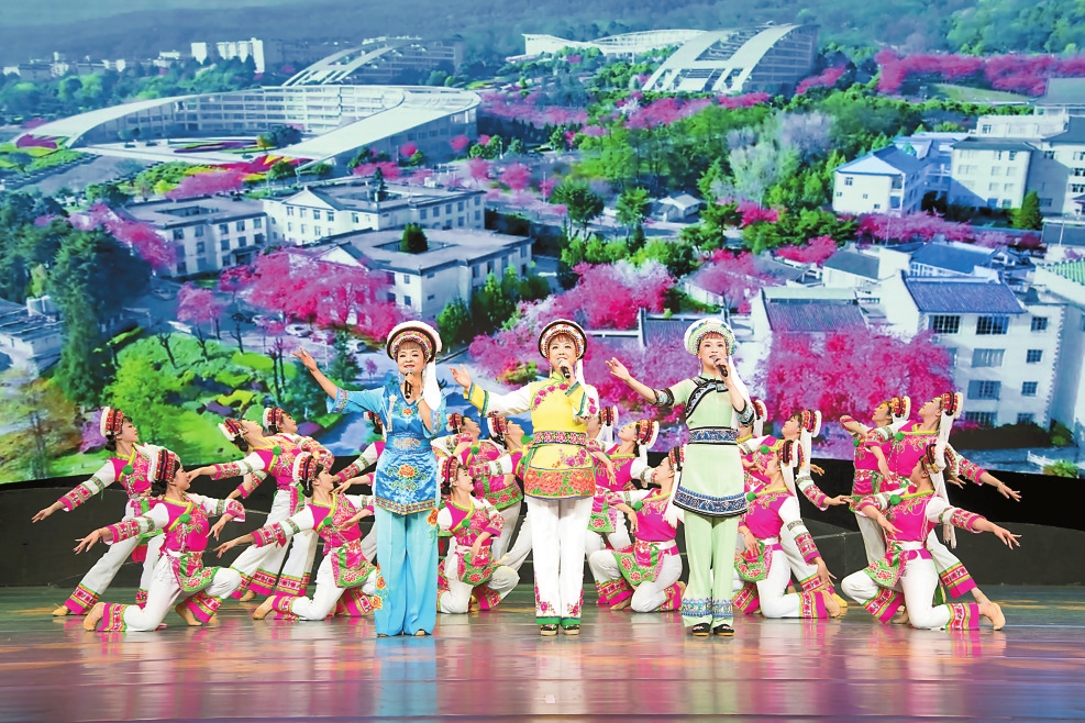 右图:3月6日,大理白族自治州妇女联合会举办“花开苍洱 我们正芳华”妇女节主题晚会,以文艺致敬新时代中国女性,线上线下为观众同步送上视听盛宴。