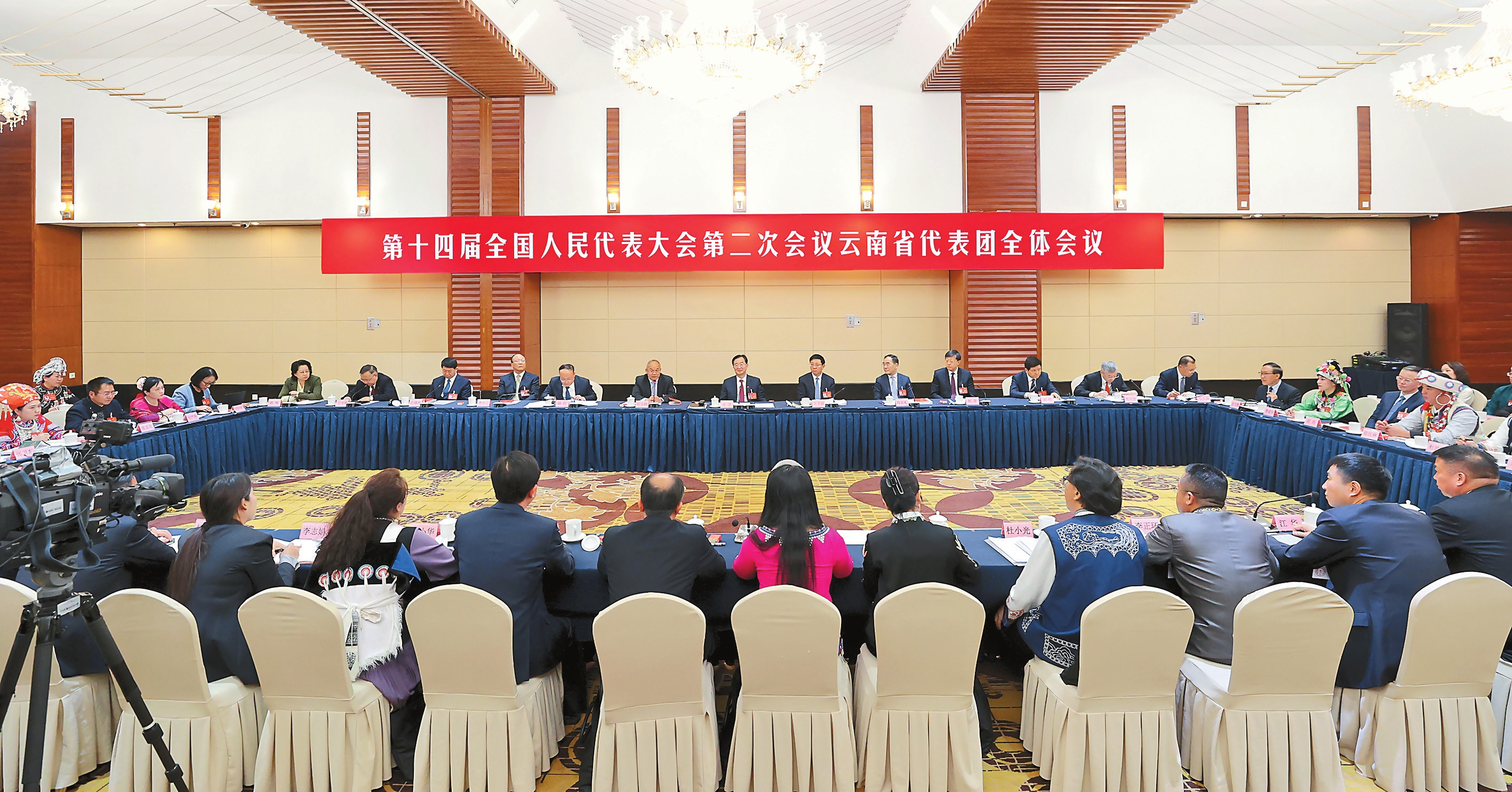 本报北京专电(记者 杨猛 张寅 瞿姝宁) 3月10日上午,出席十四届全国人大二次会议的云南省代表团举行全体会议,审议全国人大常委会工作报告、最高人民法院工作报告、最高人民检察院工作报告。