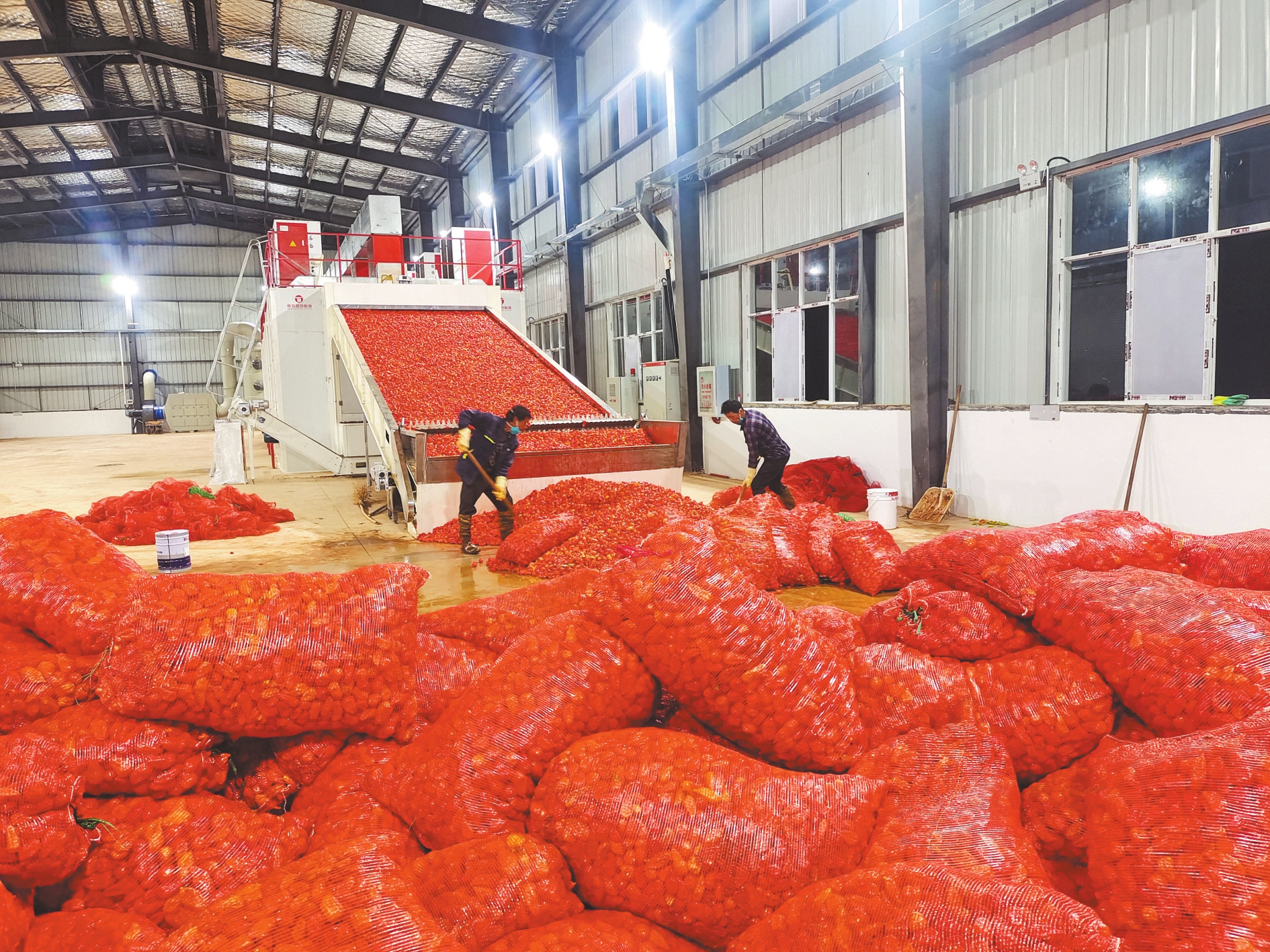 “这是一次发扬‘敢闯敢试、敢为人先’玉溪精神的实践。”回忆创业过程,松元村党总支书记卑映雄介绍,“从最开始的示范探索650亩到2023年的2522亩,从销售新鲜工业辣椒到自建烘干厂销售干工业辣椒,我们逐步探索出以‘链式发展’抓工业辣椒产业发展的思路,搭建起‘党总支+村办公司+社会企业+合作社+农户’的发展模式,以村办公司居中统筹上下游,延伸产业链,构建起工业辣椒生产端、加工端和销售端一体化的产业发展模式,运用市场力量解决农业生产技术、农资供应、销售渠道等问题,打消群众种植工业辣椒的顾虑。”