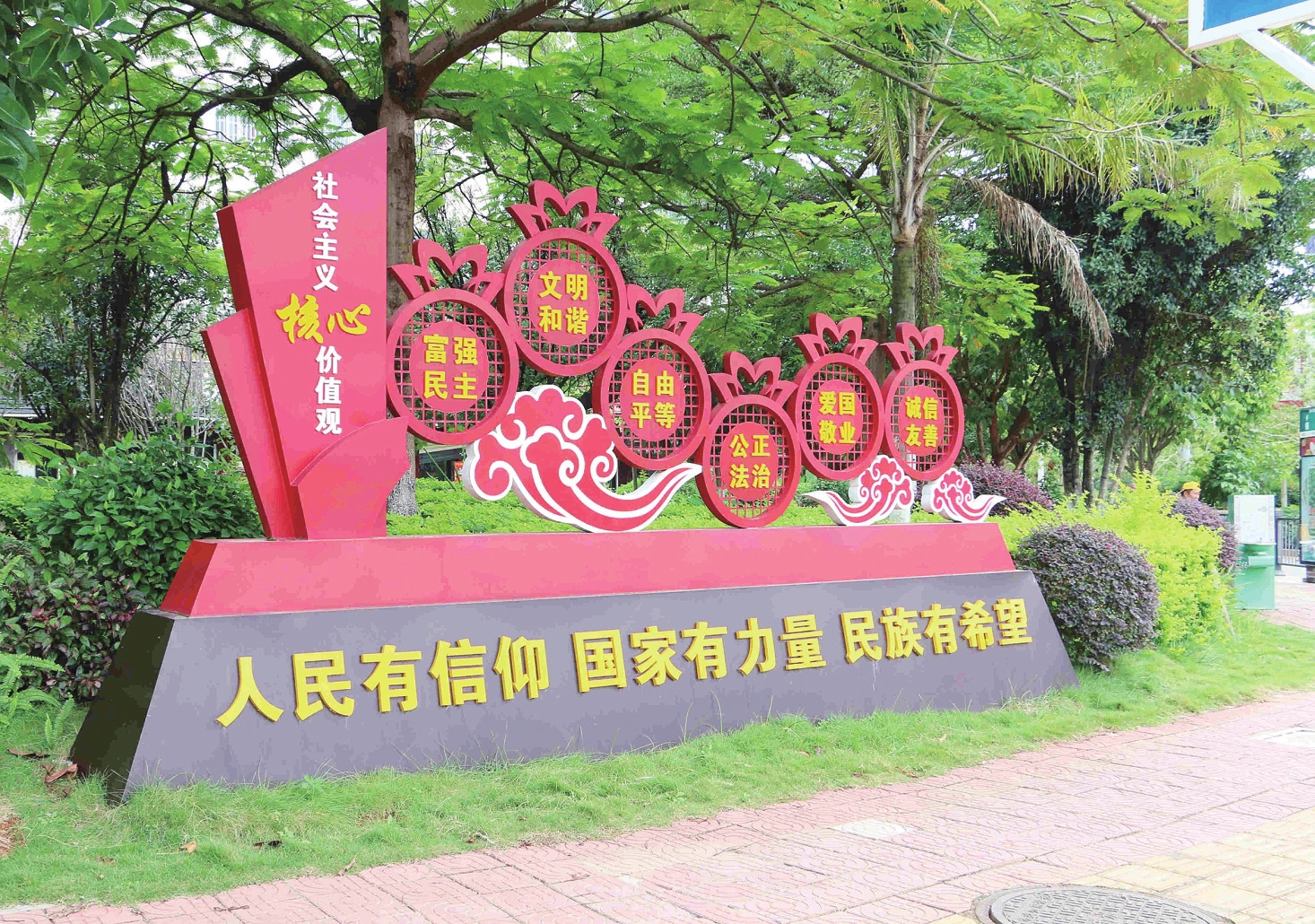 在蒙自市的街道社区、公园广场,随处可见的诚信公益广告,温馨提示着忙碌的人们诚实做人、信用做事。