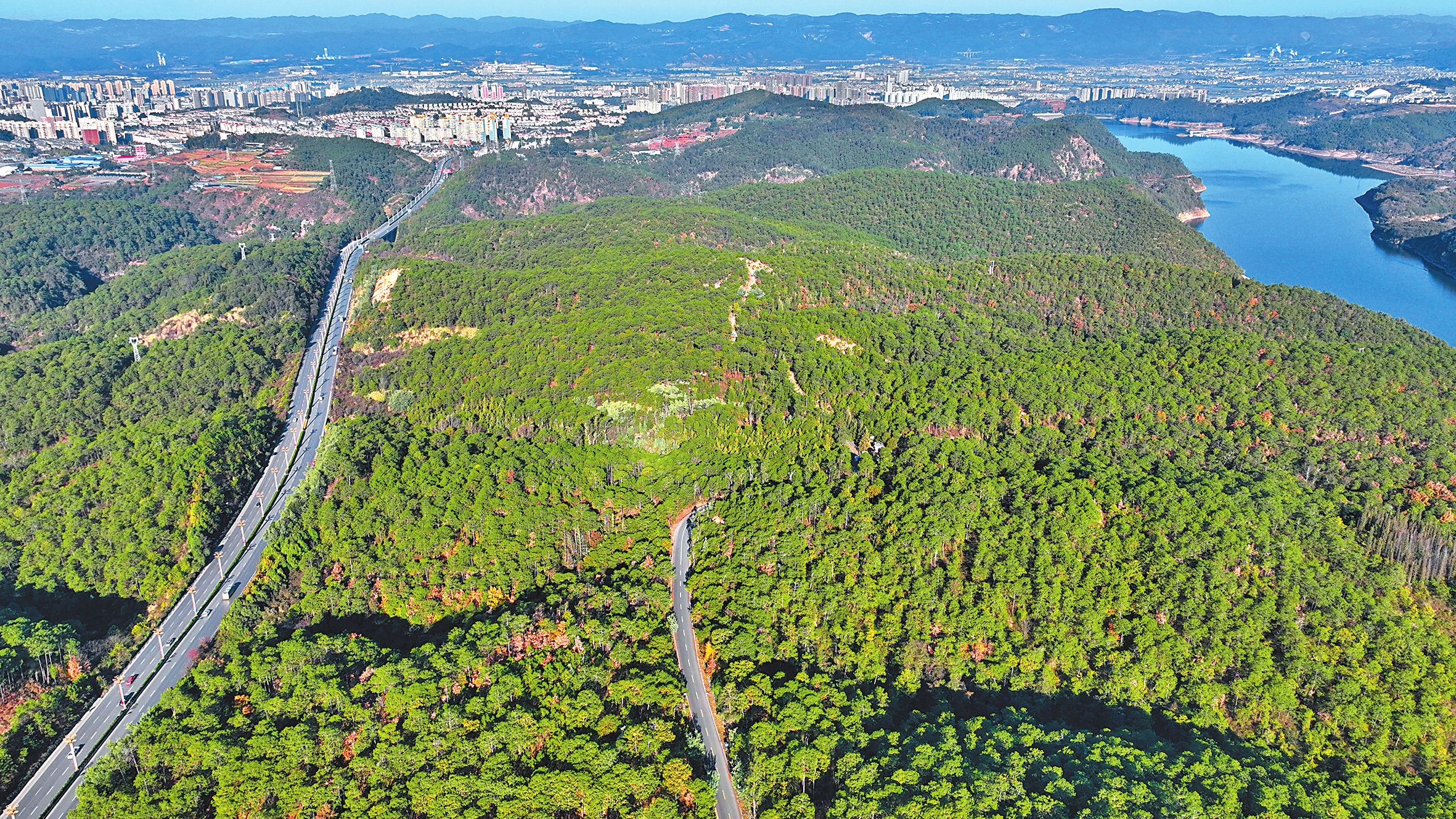 林长制推行以来,玉溪市建成四级林长组织和责任体系,严格落实好林长巡林、林长述职机制,坚决扛牢抓实保护发展森林草原资源的主体责任。目前,全市各级林长共巡林51096次,其中市级林长巡林49次、县级林长巡林919次。图为玉江高速公路两侧郁郁葱葱的森林植被。 本报通讯员 曾永洪 摄
