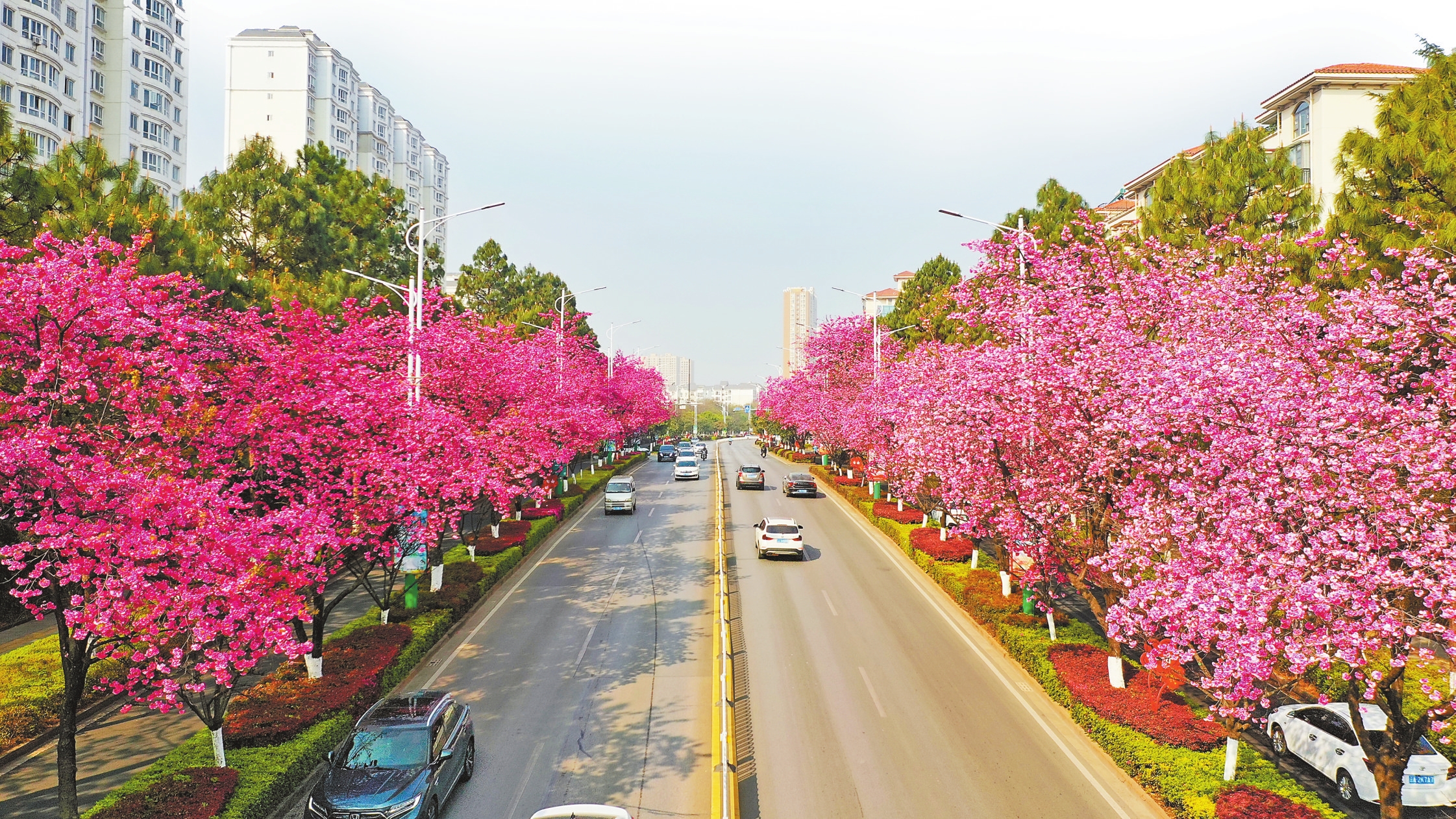 近期,安宁城区公园里、马路边成片的樱花怒放,为一城春色增添了浪漫与热闹。在热门打卡地宁湖公园,100余株樱花映衬一池春水,勾勒出一幅绝美画卷;在珍泉路、中华路等主干道两旁,一树树盛放的樱花相连,似条条粉色丝带装点着城市。