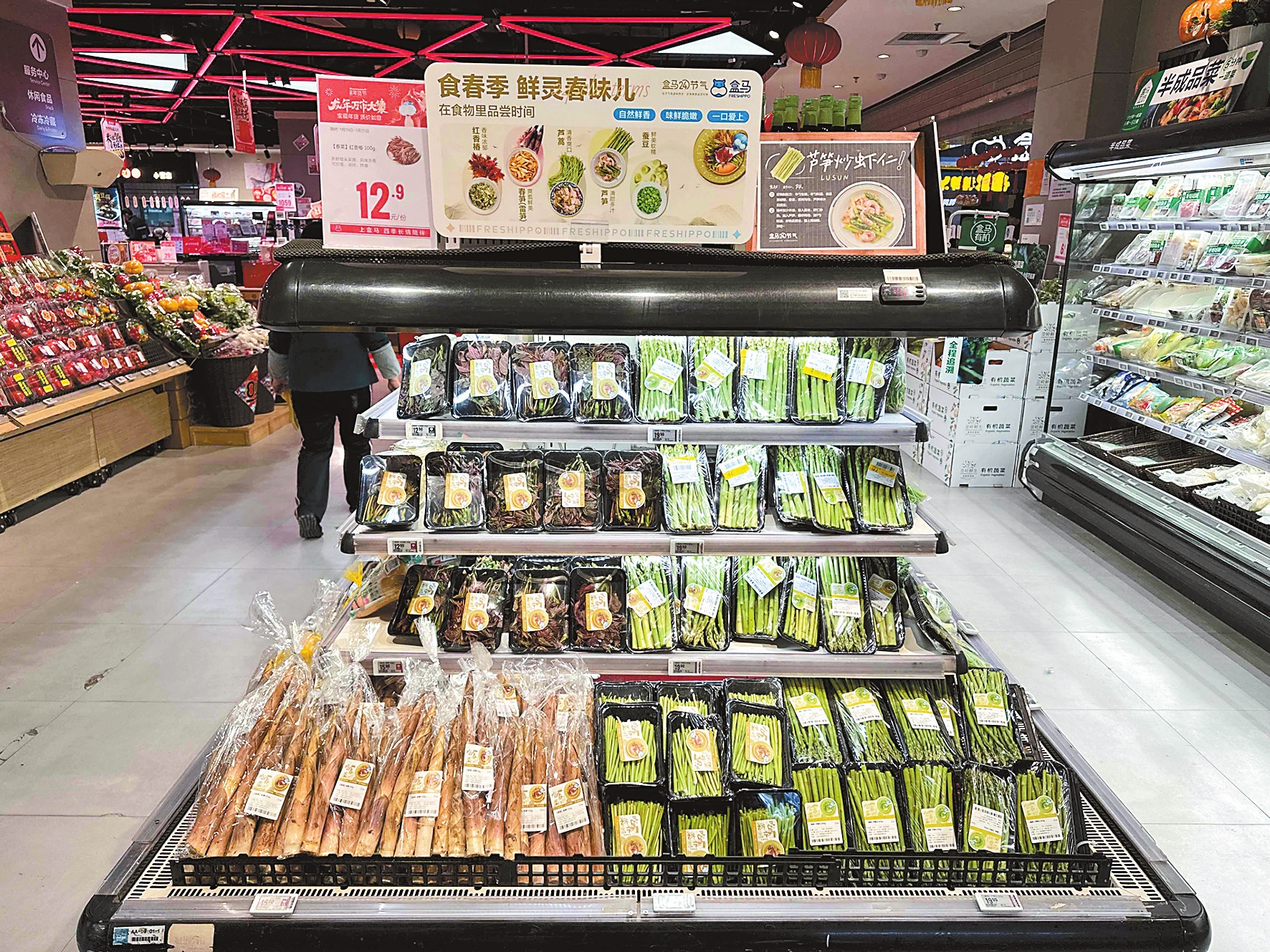 惊蛰时节一过,田间地头的春菜就大量上市,超市货架上已是一片“春意盎然”。3月下旬,在上海的盒马门店,产自云南红河哈尼族彝族自治州的香椿,受到当地消费者青睐。