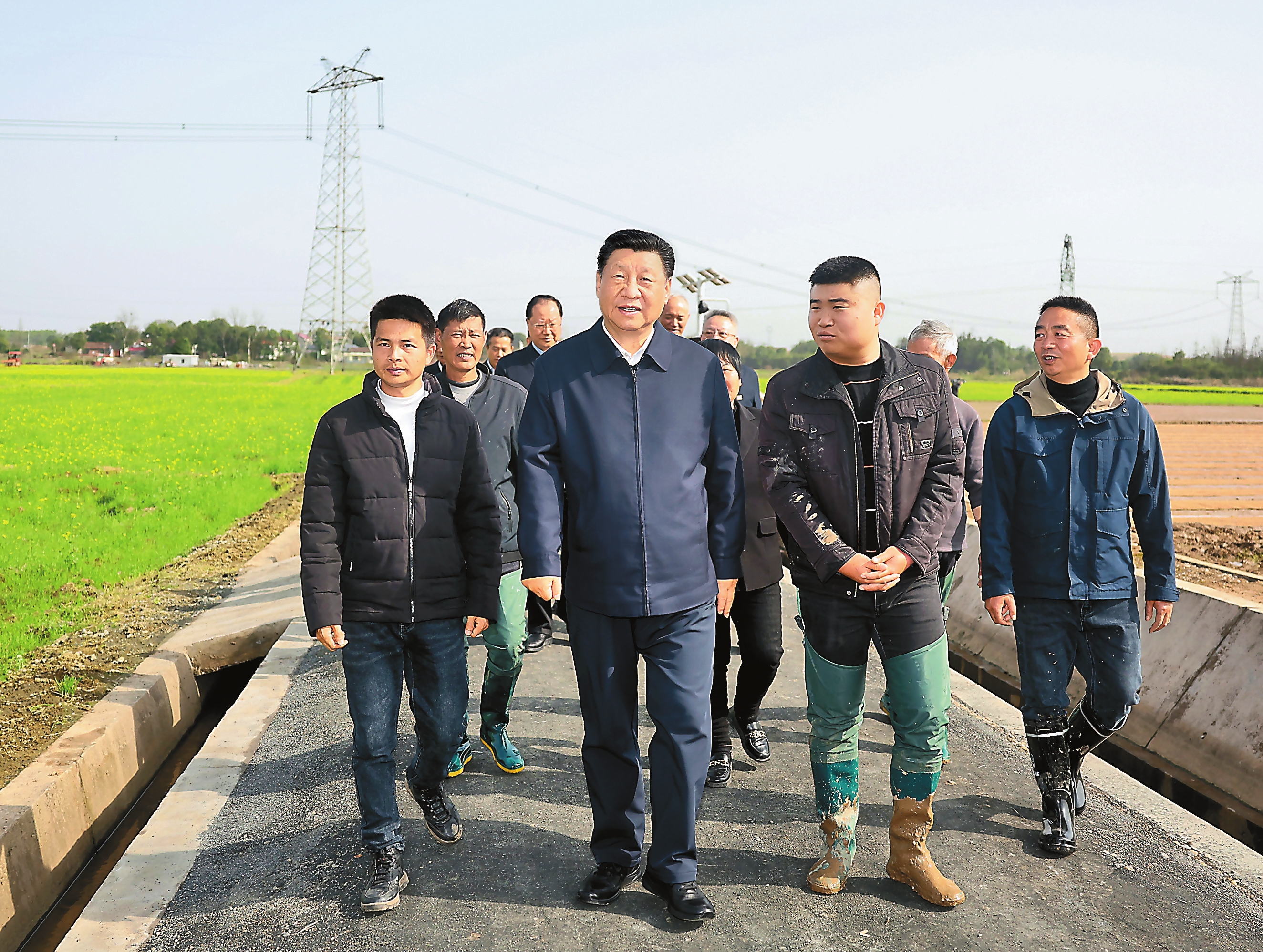 3月18日至21日,中共中央总书记、国家主席、中央军委主席习近平在湖南考察。这是19日下午,习近平在常德市鼎城区谢家铺镇港中坪村,同种粮大户、农技人员、基层干部亲切交流。新华社记者 鞠鹏 摄