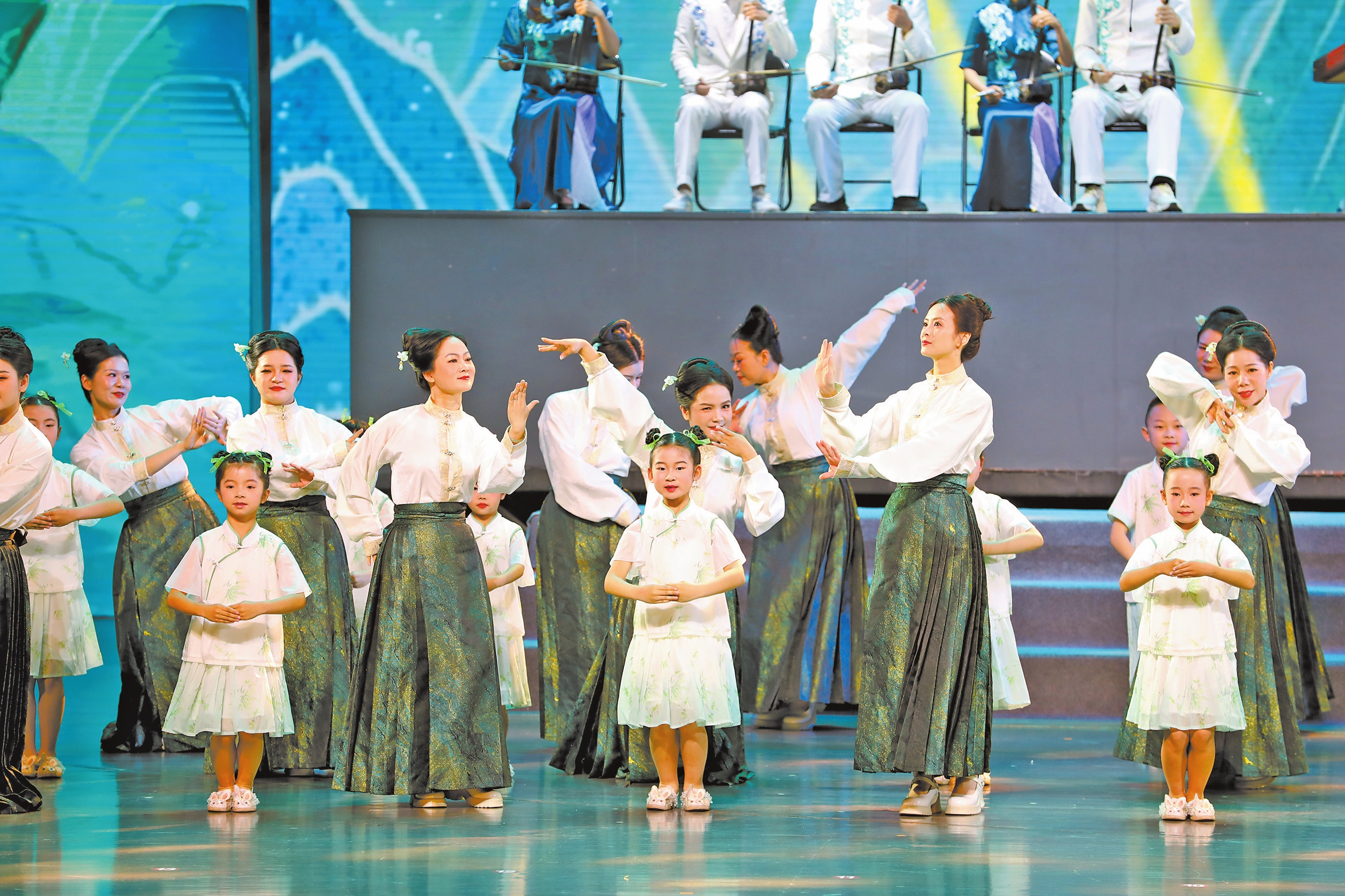 跟着鼓点共鸣共情的合唱《小雅·鹿鸣》、女声合唱《螃蟹歌》、童声合唱《卖报歌》、混声合唱《西游行》和《当》、女声领唱与合唱《喊月亮》……一曲曲优美动听的合唱,让人们感受来自聂耳故乡的音乐魅力。