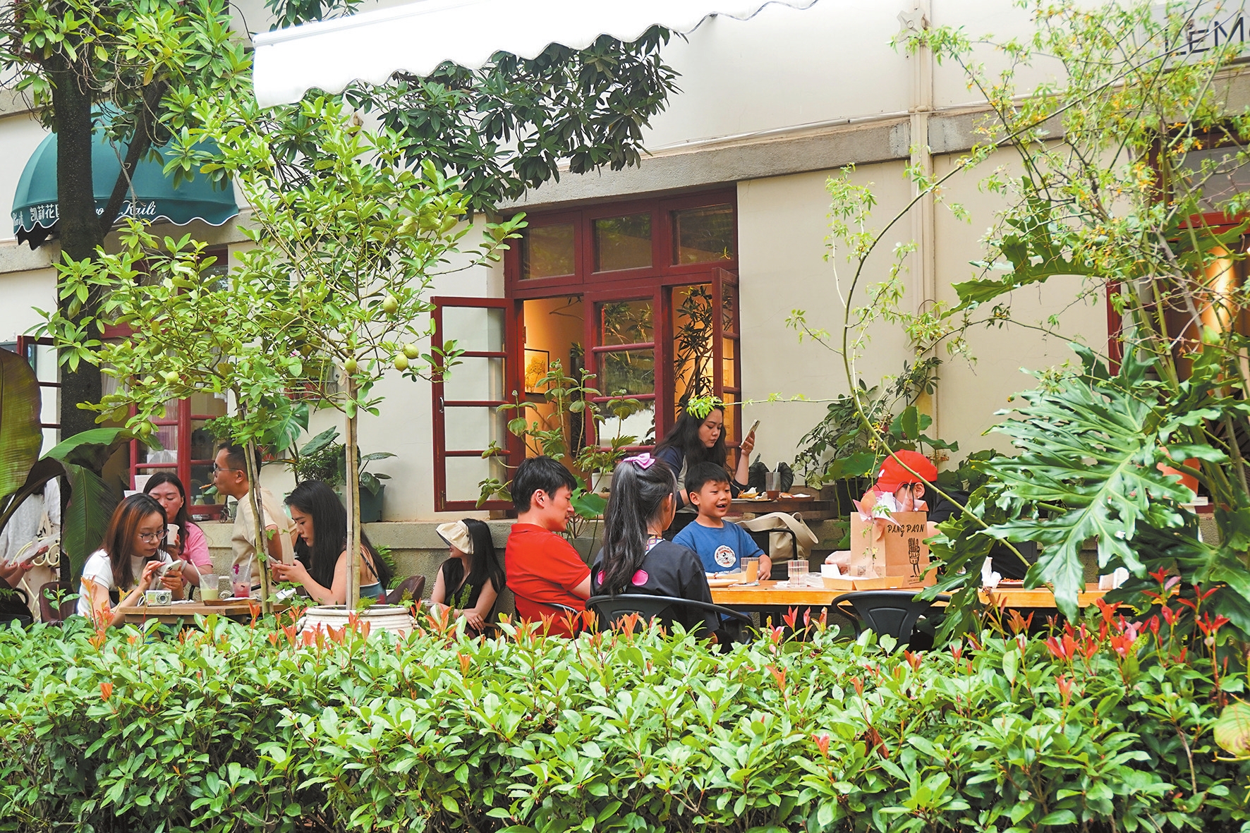 午间的弥勒寺公园,阳光穿过树林洒在健康步道上,三五成行的青年人在眼镜博物馆参观,几个好友在枫叙咖啡馆闲聊,欢喜茶馆有人就着一壶茶展开喜欢的书籍。小朋友们穿着轮滑鞋、骑着平衡车在公园内尽情玩耍,玩累了可以到掐丝珐琅传习馆坐下来完成一幅画作,或在手工作坊缝制一个香包。