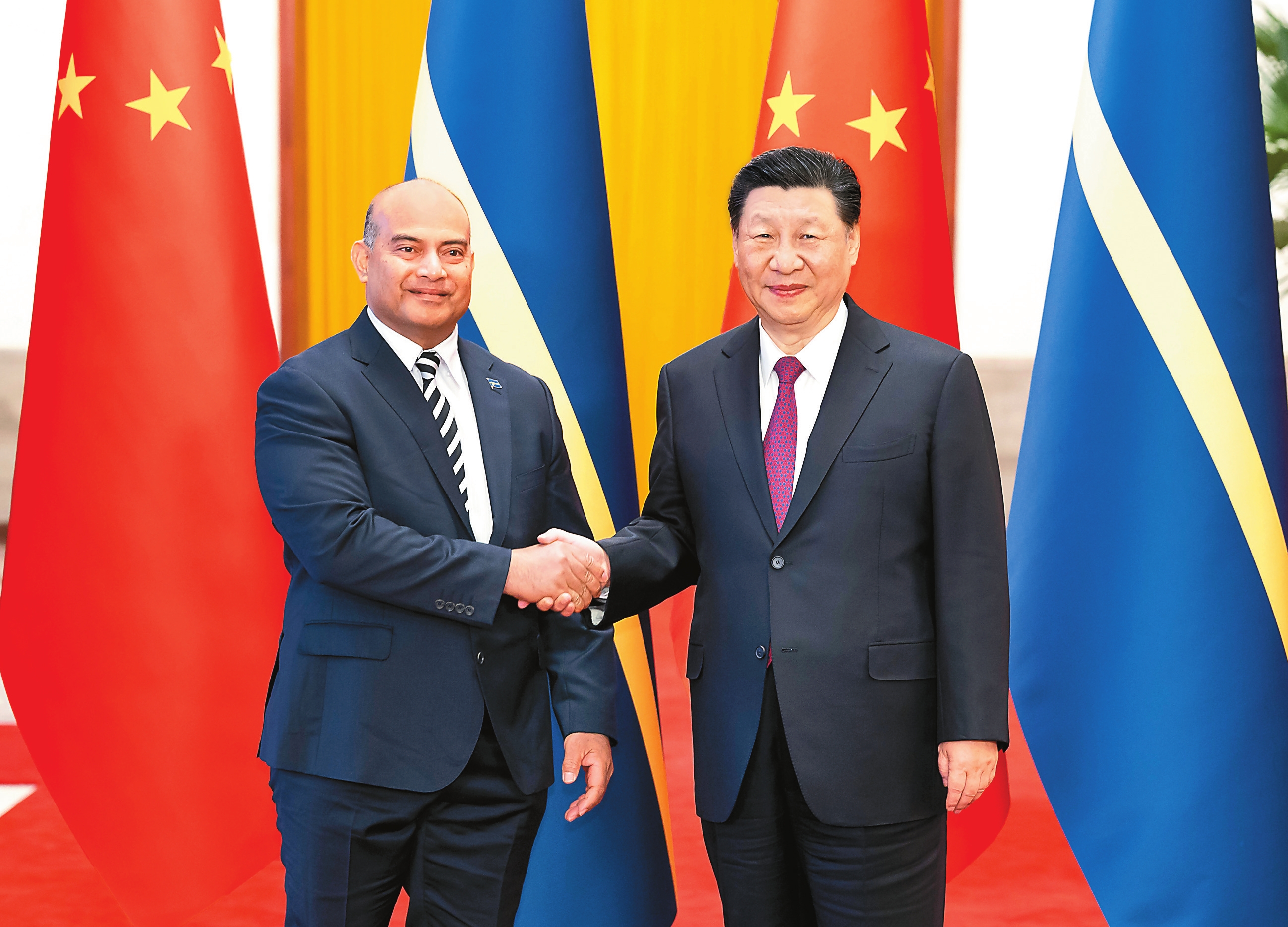 习近平指出,今年1月,瑙鲁作出坚持一个中国原则、同中国复交的政治决断,这是符合历史大势、顺应时代潮流之举。友好不分先后,只要开启,就会有光明前途。合作不论大小,只要真诚,就会有丰硕成果。中瑙关系已经翻开新的历史篇章。中方愿同瑙方一道,开创中瑙关系的美好未来,更好造福两国人民。