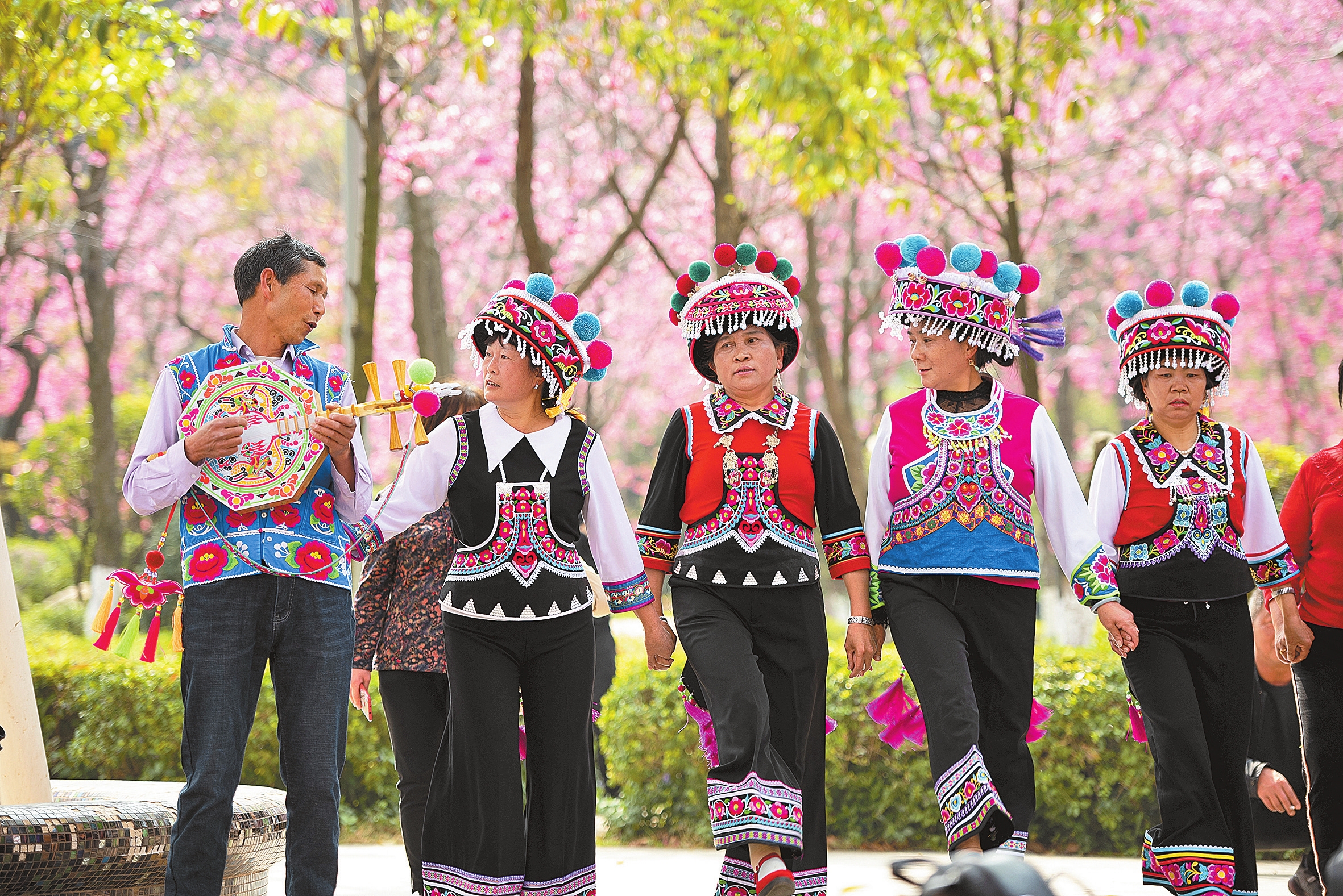 近期,官渡区樱花公园的上百株樱花烂漫绽放,季宏路两边一簇簇樱花俏立枝头,市民们漫步陶醉其间,赏樱、观景、拍照、跳舞,乐享春日好时光。