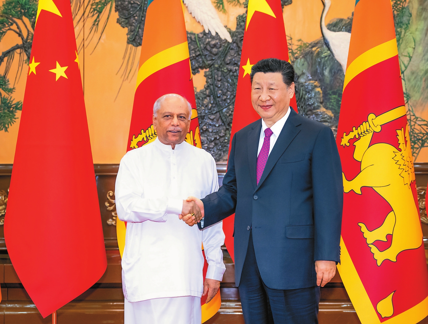 3月27日下午,国家主席习近平在北京人民大会堂会见来华进行正式访问的斯里兰卡总理古纳瓦德纳。新华社记者 翟健岚 摄
