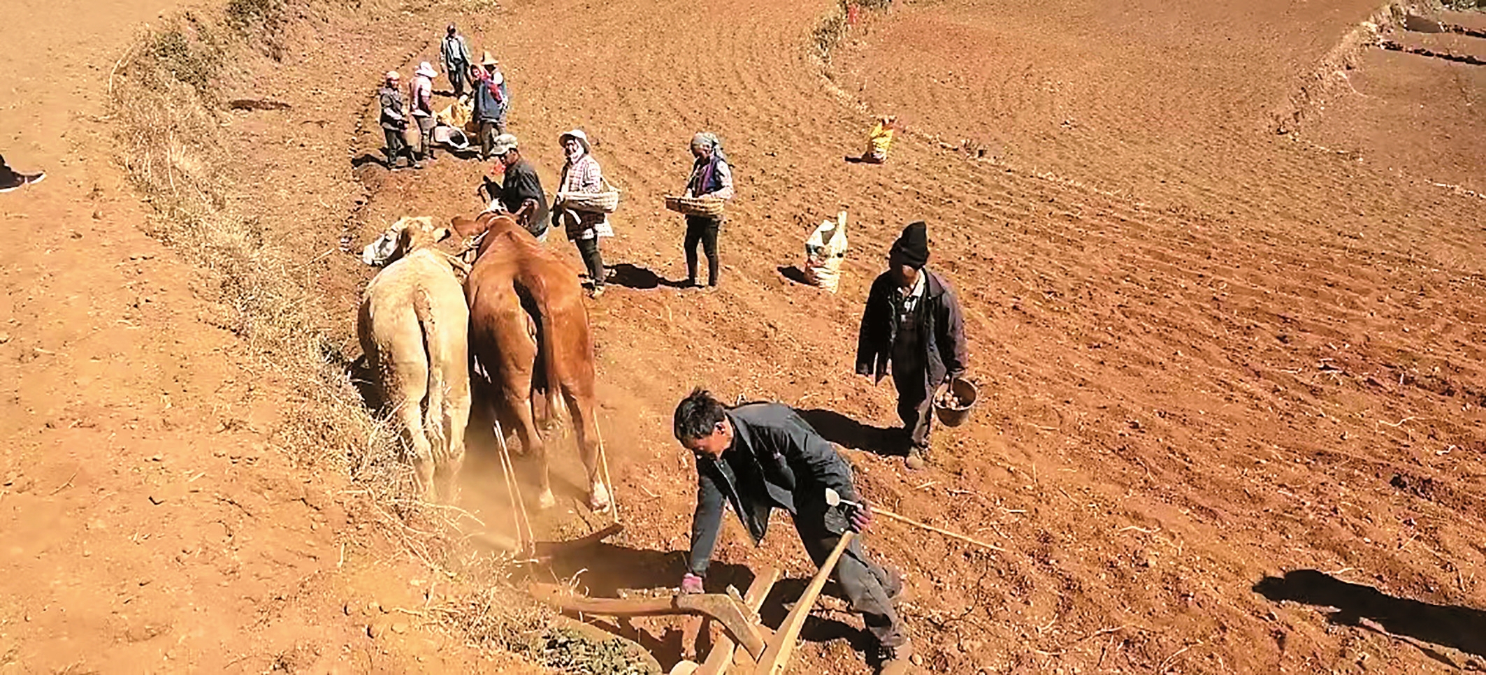 “我们的化肥、洋芋种早就准备好了。”农户李天富说,“春耕生产一天也不敢耽误,只有下种时间合适,有机肥、农家肥到位,洋芋才能‘开花’。”