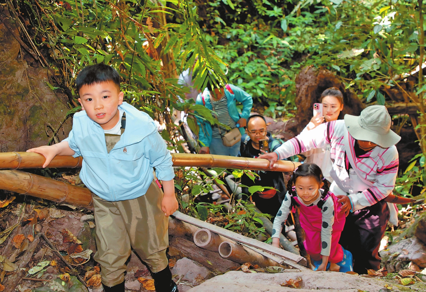 阳光明媚的春日,在景洪市基诺山基诺族乡,陆续有40余名游客在西双版纳悠乐秘境雨林徒步文化有限公司的组织下,分批从新司土村委会的么卓村地段进入森林,开启了时长4个小时的雨林探秘之旅。在当地专业向导的带领下,游客沿着林中小径一边穿越雨林沟谷,一边通过向导的科普讲解了解热带雨林。