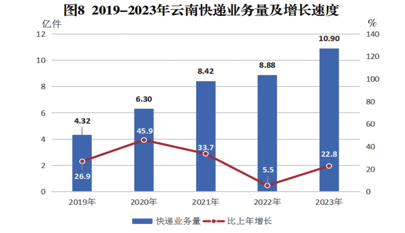 [15] 邮政行业寄递业务总量是指企业从事各类邮政普遍服务业务、快递业务的总数量。