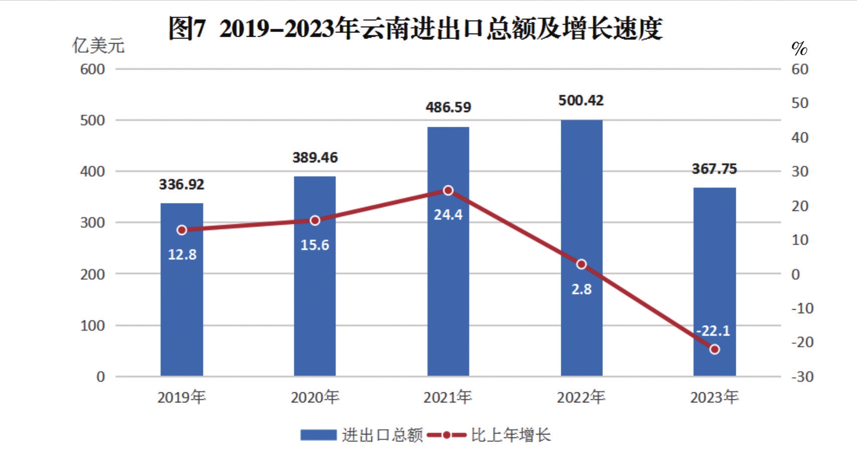 全年外贸进出口总额367.75亿美元,比上年下降22.1%。其中,出口总额131.48亿美元,下降39.6%;进口总额236.26亿美元,下降7.2%。