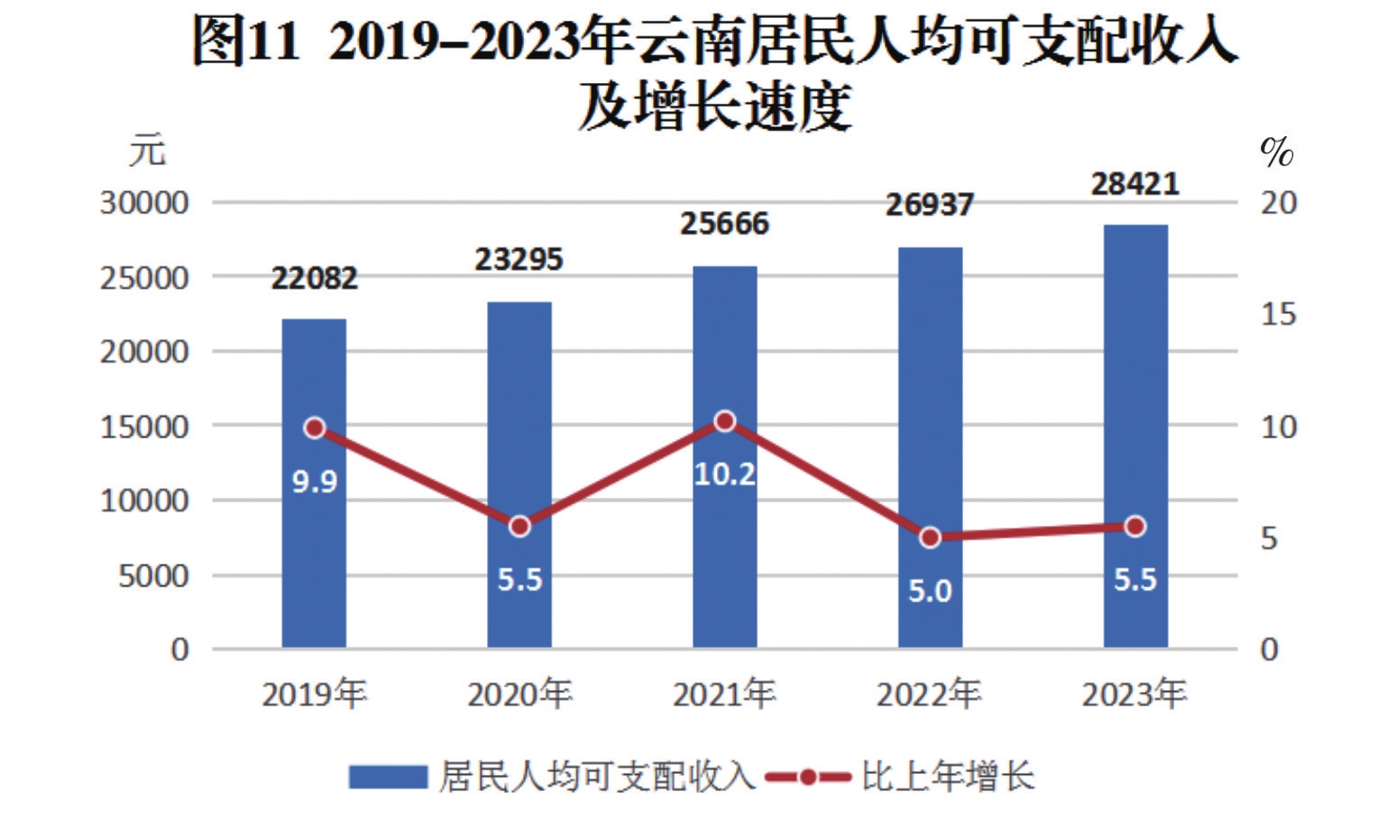 [20] 居民人均可支配收入数据由国家统计局云南调查总队提供。居民人均可支配收入指通过住户收支与生活状况调查取得的,调查户在调查期内获得的、可用于最终消费支出和储蓄的总和,即调查户可以用来自由支配的收入,除以家庭常住人口得到的人均收入。可支配收入既包括现金,也包括实物收入。按照收入的来源,可支配收入包含四项,分别为:工资性收入、经营净收入、财产净收入、转移净收入。按常住地分,得到城镇和农村居民可支配收入。