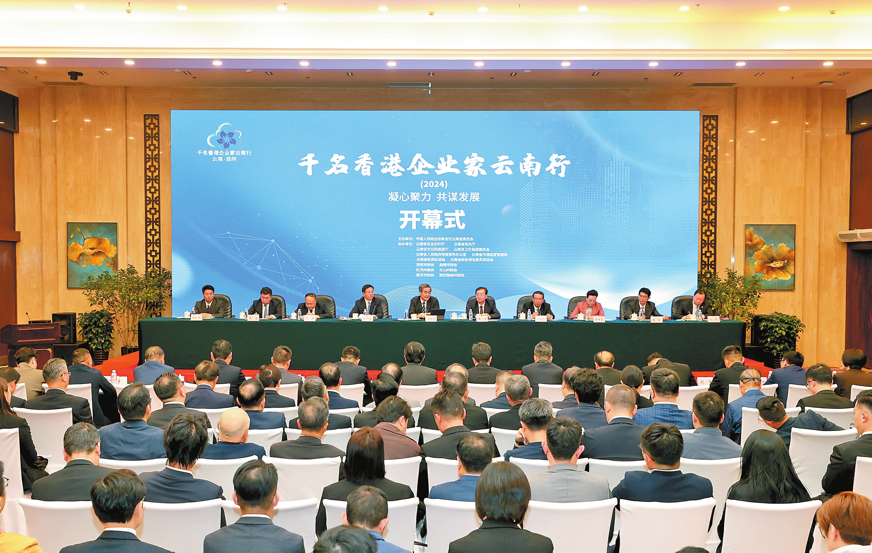 省委书记王宁致辞,省委副书记、省长王予波推介云南,省政协主席刘晓凯主持。中国银行原副行长、中银香港原总裁岳毅等出席。香港工商总会会长、信义能源董事会主席李圣泼代表香港企业家发言。