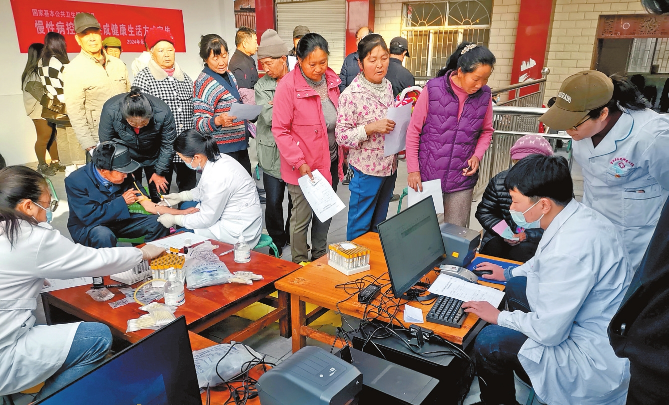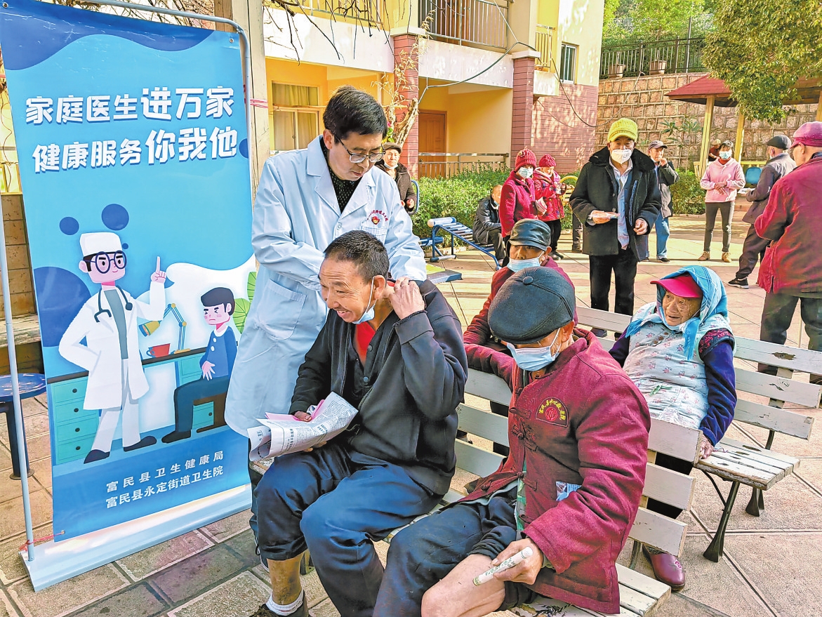 富民县7个乡镇(街道)卫生院下辖73个村卫生室,配备160名乡村医生,开展14项基本公共卫生服务,建立电子居民健康档案145101份,建档率达97.05%。其中,对辖区内重点人群开展健康管理,开展家庭医生签约服务,签约77854人,对脱贫户、监测对象签约及履约服务率达100%。