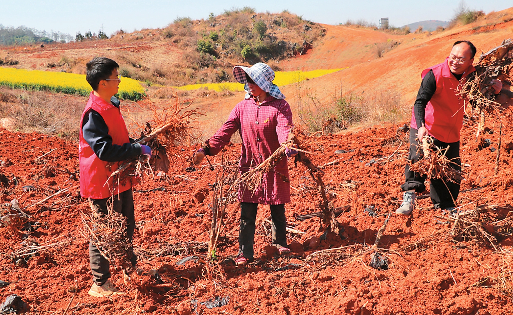 为充分发挥党建引领作用,强化协调联动,石林彝族自治县大可乡成立春耕生产领导小组,建立由乡党委主要领导抓统筹、乡班子成员包村抓推进、村“两委”班子分组抓落实、党员群众齐参与的责任体系。乡党委将春耕生产责任落实到人、任务细化到村,确保种植任务高质量落实到位。党员干部下沉到户,全面排查辖区内水利灌溉、产业机耕道路、农资产品等情况,了解农户春耕备耕意愿、家庭耕作面积、备耕劳动力是否充足等事项,有力有序保障春耕备耕工作。