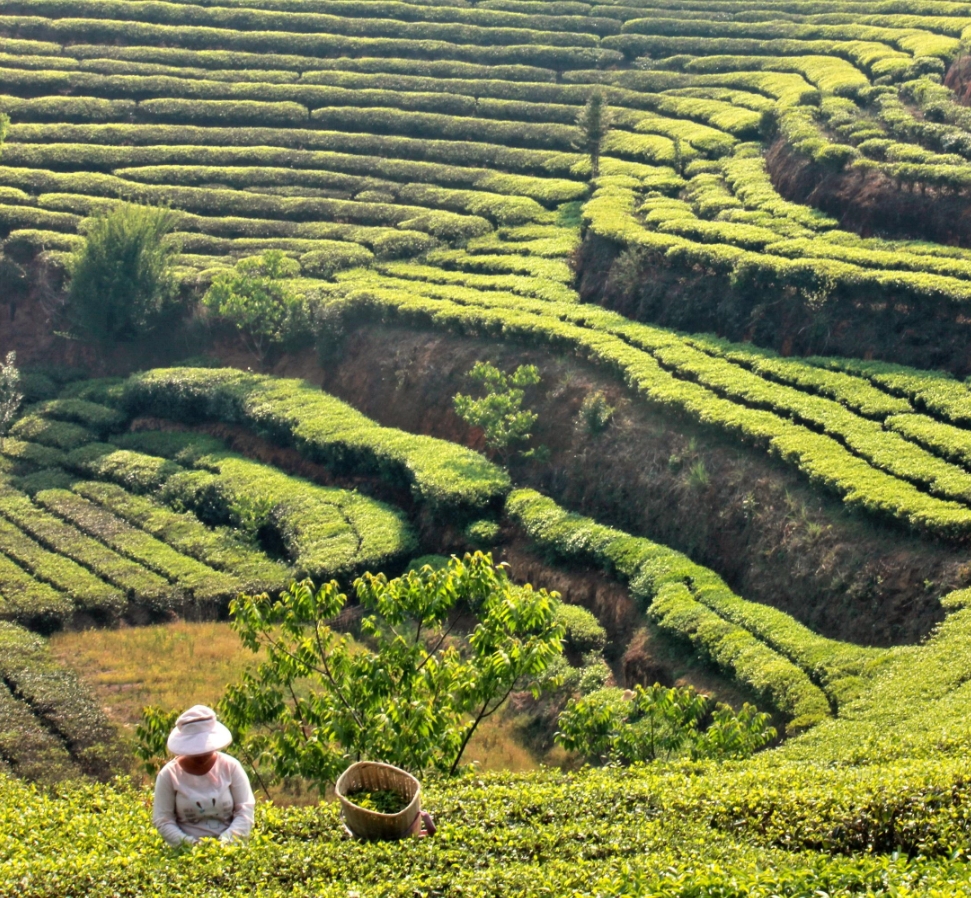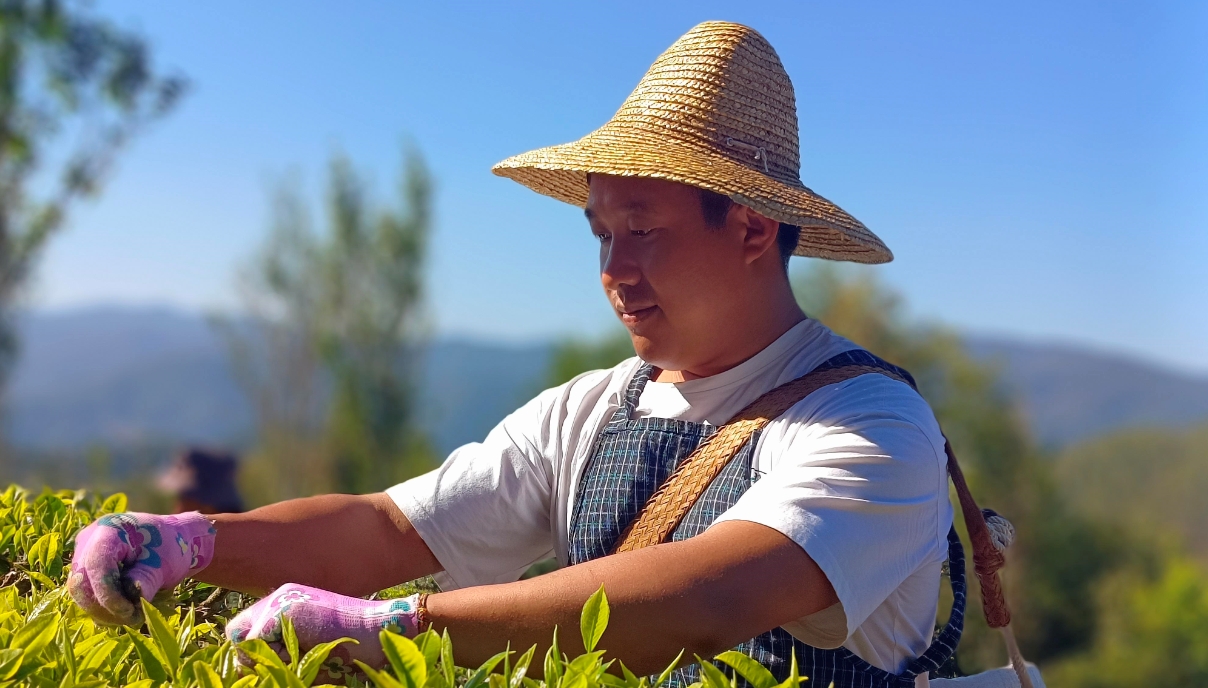 澜沧县茶农采摘春茶。