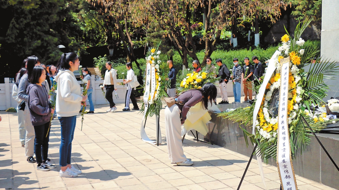 缅怀烈士功绩,弘扬爱国精神。4月3日,在西南联大旧址,一场主题为“铸魂2024”的清明祭英烈活动举行。省消防救援总队训练与战勤保障支队、省财政厅、省社科联、省第一人民医院、富滇银行、昆明医科大学海源学院、昆明师范高等专科学校附属小学、上海师范大学附属官渡实验学校、云南师范大学师生代表及来自云南师范大学幼儿园等单位的4000余名党员、群众自发前来组织悼念活动,瞻仰闻一多先生衣冠冢、“一二·一”运动四烈士墓和李公朴先生衣冠冢,向烈士墓和革命烈士纪念碑敬献了花篮和鲜花。连日来,来自我省各企事业单位、大中小学的近万名党员、群众,纷纷来到西南联大旧址,瞻仰“一二·一”运动四烈士墓,参观西南联大博物馆,聆听革命烈士为国献身的故事。