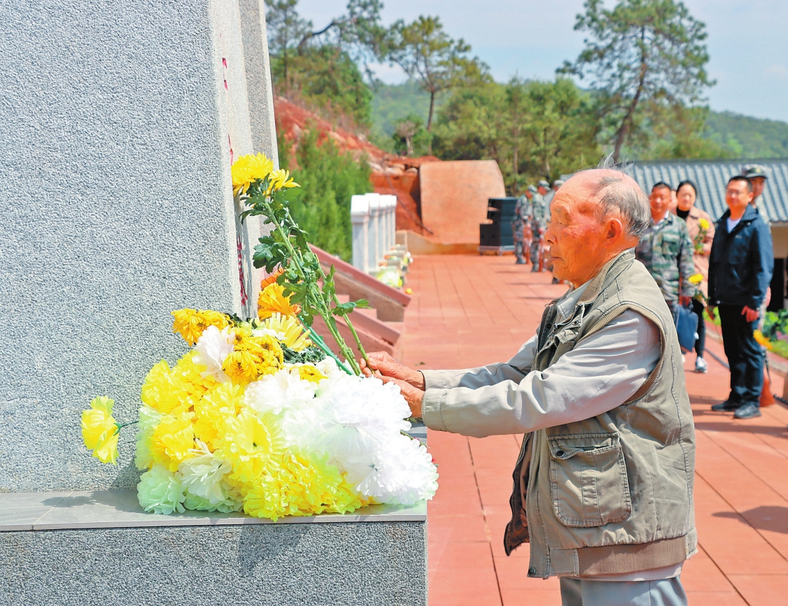 清明即将到来之际,4月2日清晨,满山翠绿的昆明市禄劝彝族苗族自治县九龙乡鲁筷村金钟山,格外庄严肃穆。各族干部群众手捧鲜花不约而同来到位于这里的“红军洞”烈士陵园,祭奠1935年跳入落水洞牺牲的21位红军烈士和5名牺牲在长征路上的红军烈士。